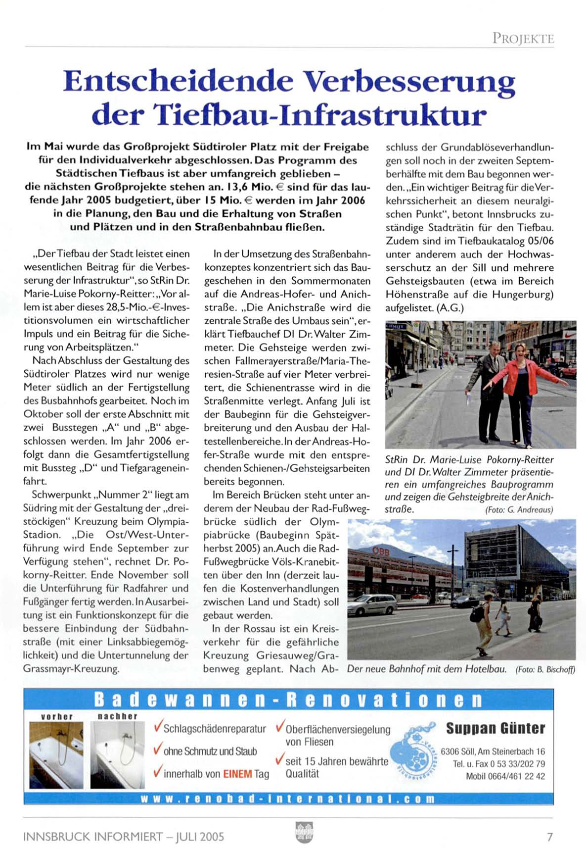 der Baubeginn für die Gehsteigverbreiterung und den Ausbau der Haltestellenbereiche. In der Andreas-Hofer-Straße wurde m i t den entspreStRin Dr. Marie-Luise Pokorny-Reitter