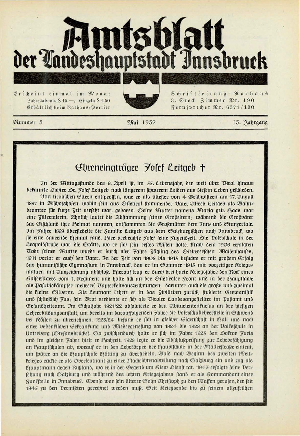 1897 in Mschofshofen, wohin sein aus Südtirol stammender Dater Alfred L.eitgeb als Wahnbeamter für kurze Zeit verseht war, geboren. Seine Mutter namens M a r i a geb. k^aas war