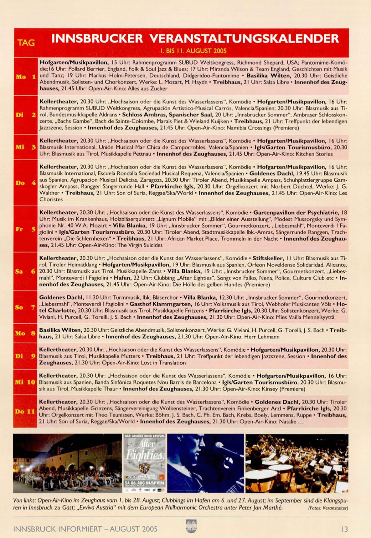 INNSBRUCK INFORMIERT -AUGUST 2005