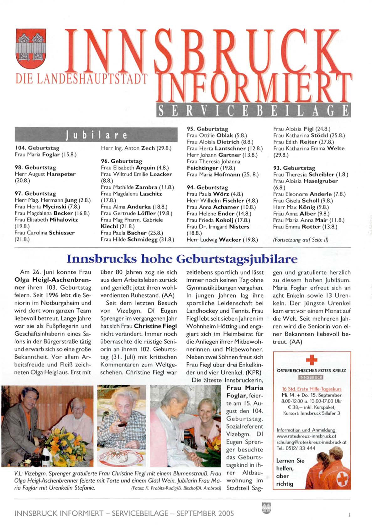 INNSBRUCK INFORMIERT - SERVICEBEILAGE - SEPTEMBER 2005