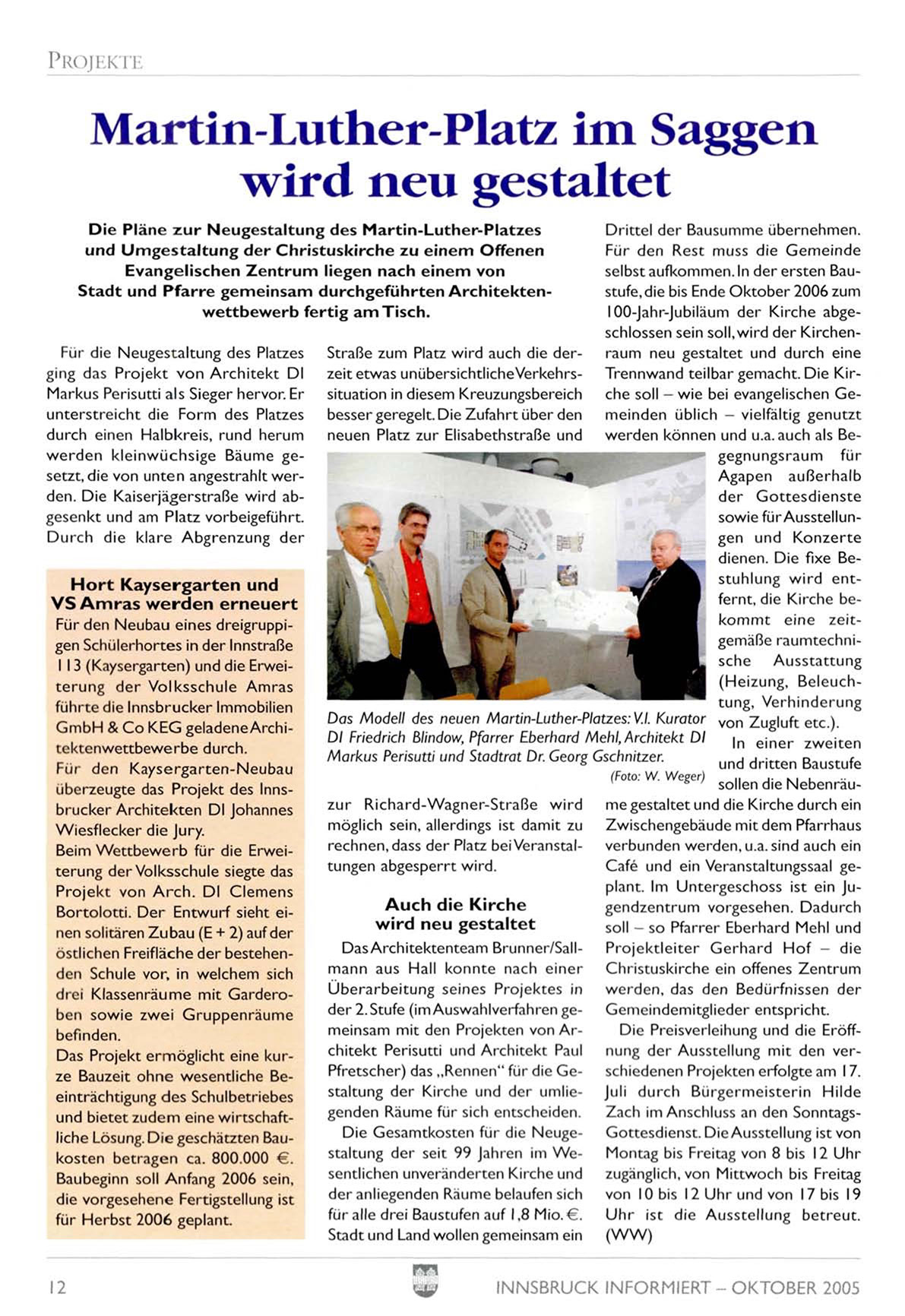 Stadt und Pfarre gemeinsam durchgeführten A r c h i t e k t e n