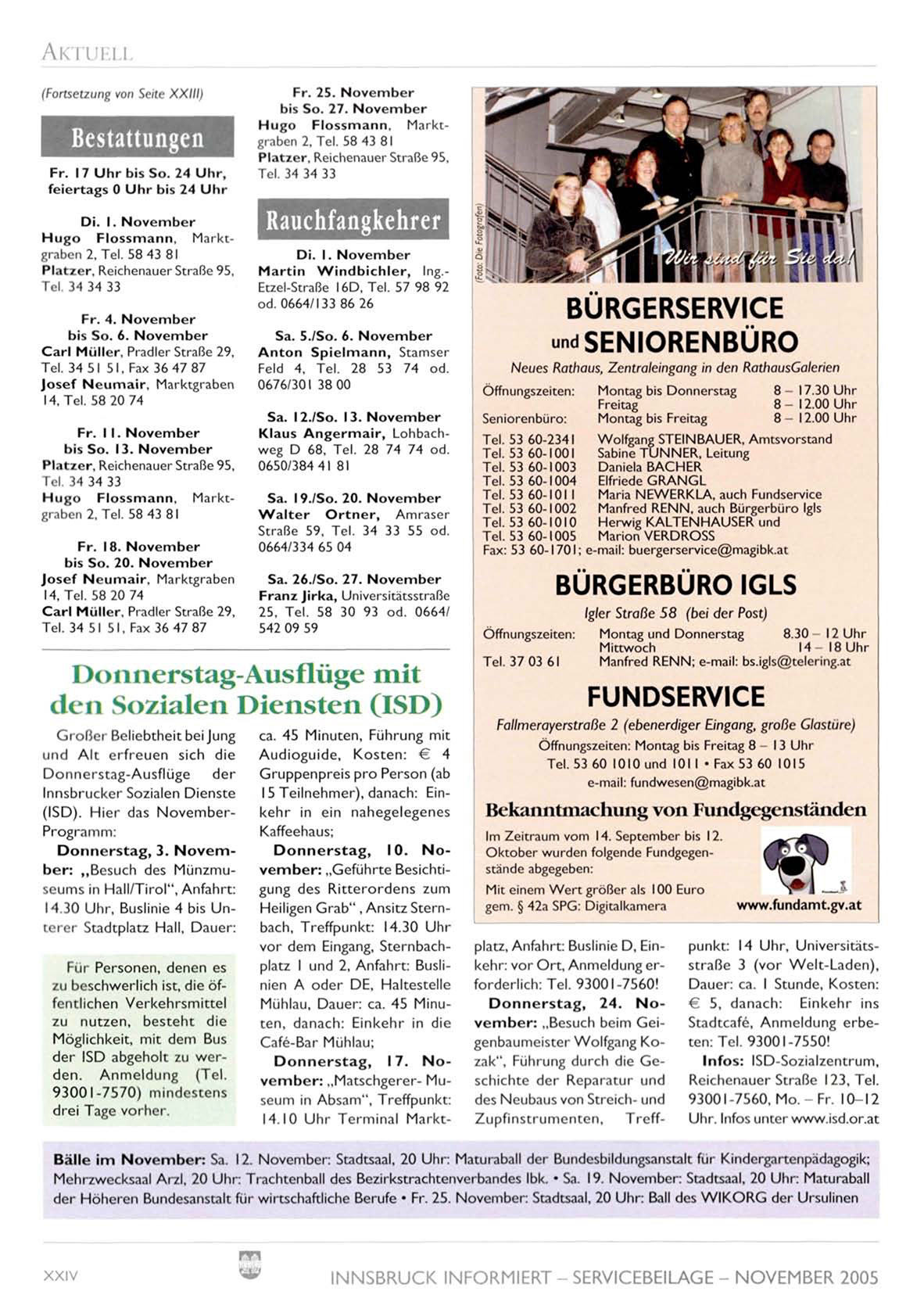 INNSBRUCK INFORMIERT - SERVICEBEILAGE - NOVEMBER 2005
