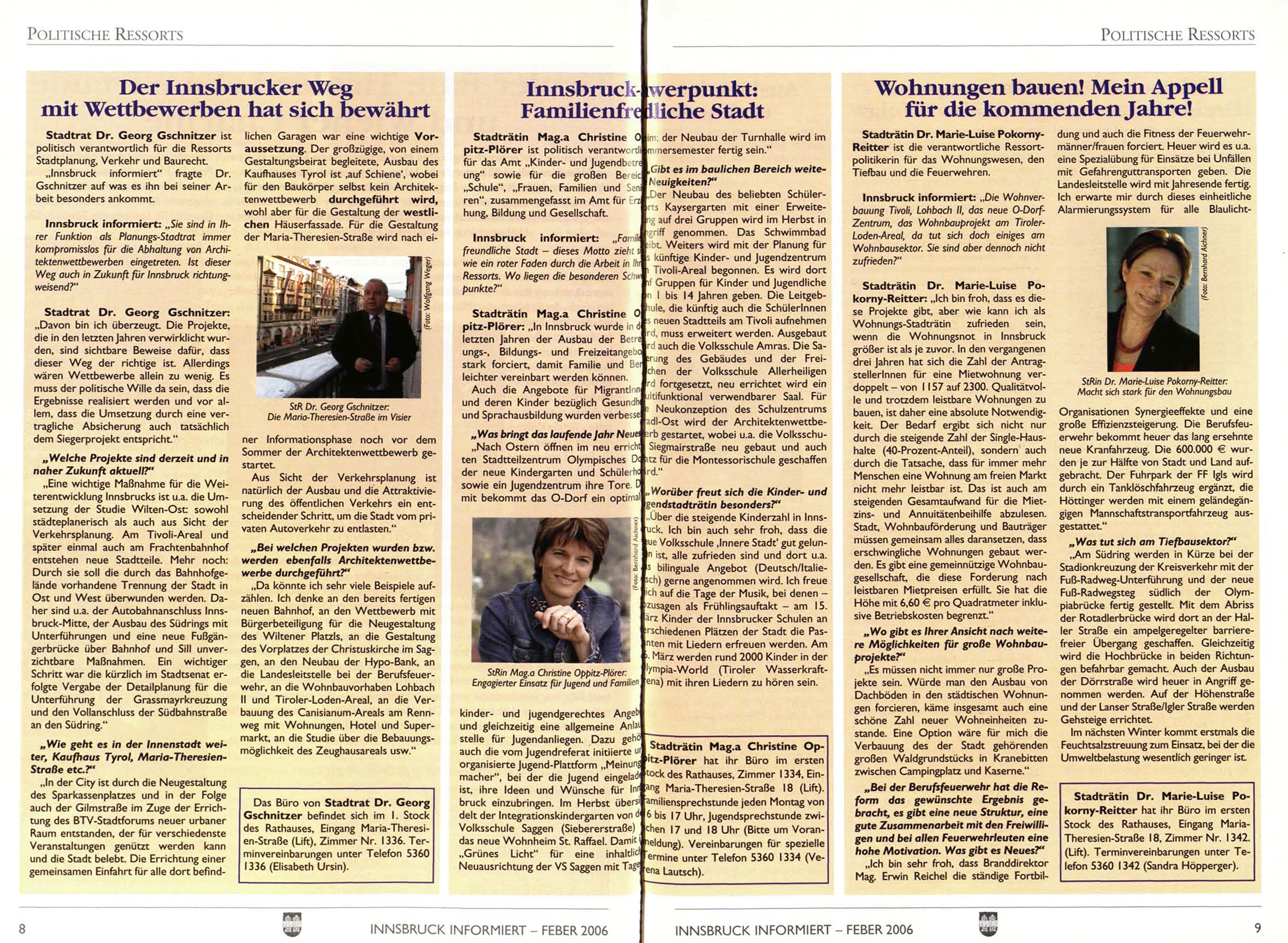 wohl aber für die Gestaltung der westliInnsbruck i n f o r m i e r t : „Sie sind in Ih- chen Häuserfassade. Für die Gestaltung