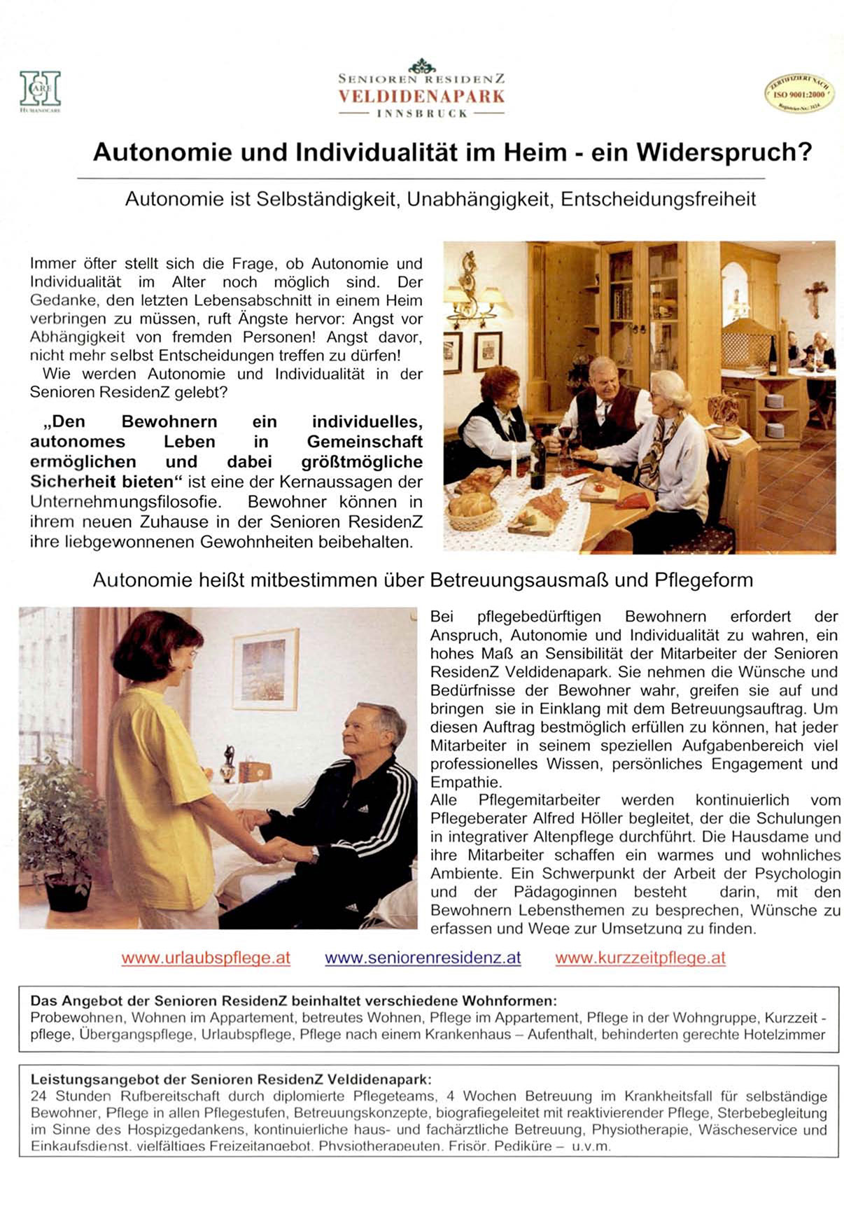 Leistungsangebot der Senioren Residenz Veldidenapark: