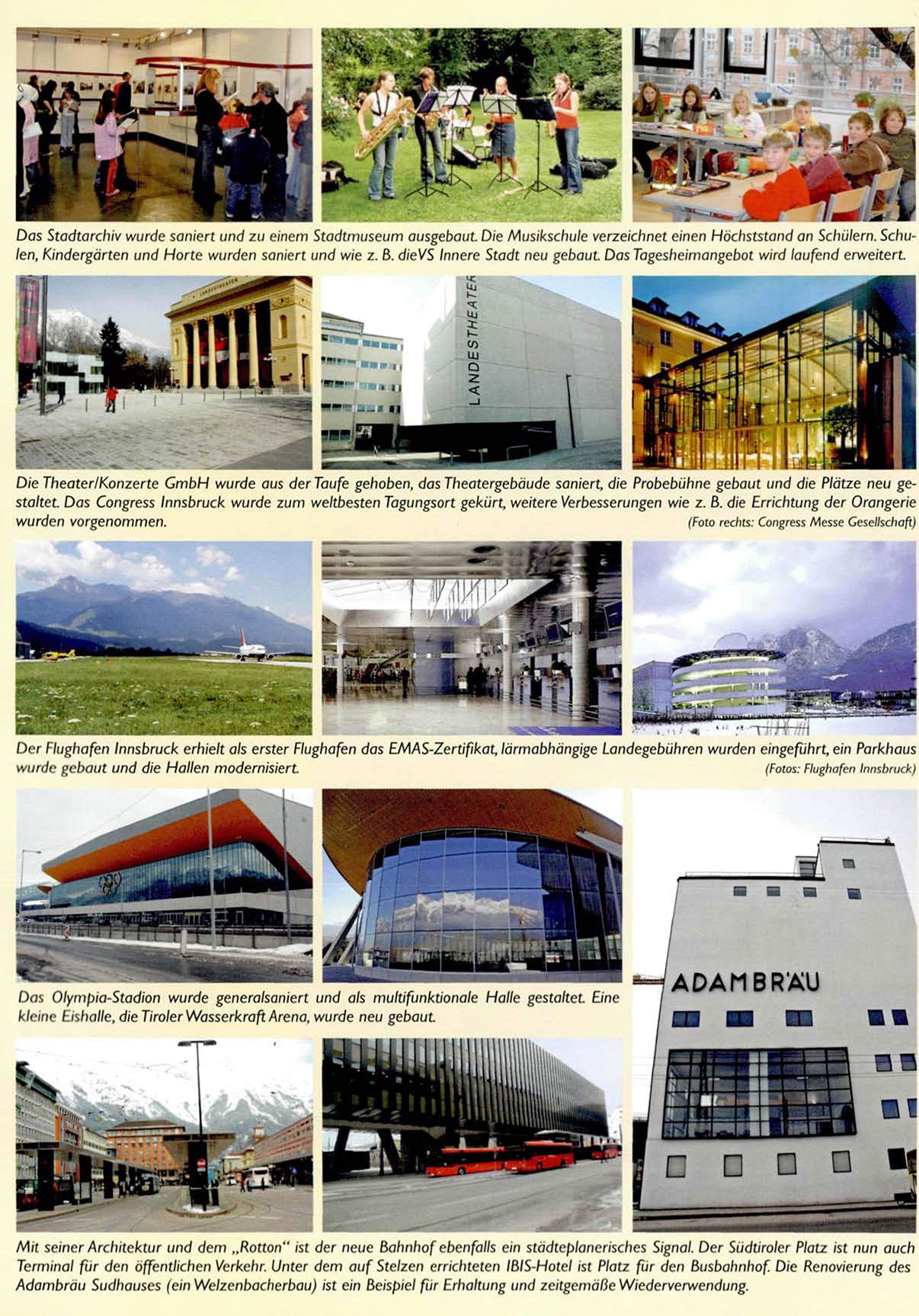 Die Theater/Konzerte GmbH wurde aus der Taufe gehoben, das Theatergebäude saniert, die Probebühne gebaut und die Plätze neu gestaltet. Das Congress Innsbruck wurde zum weitbesten Tagungsort gekürt, weitere Verbesserungen wie z. B. die Errichtung der Orangerie