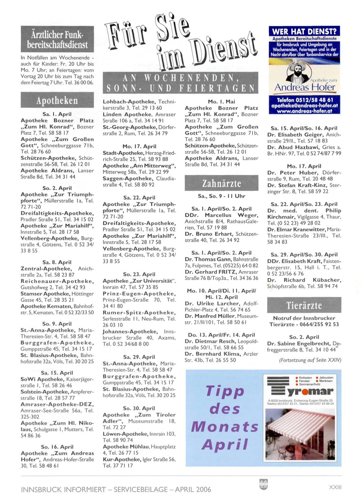 INNSBRUCK INFORMIERT - SERVICEBEILAGE -APRIL 2006
