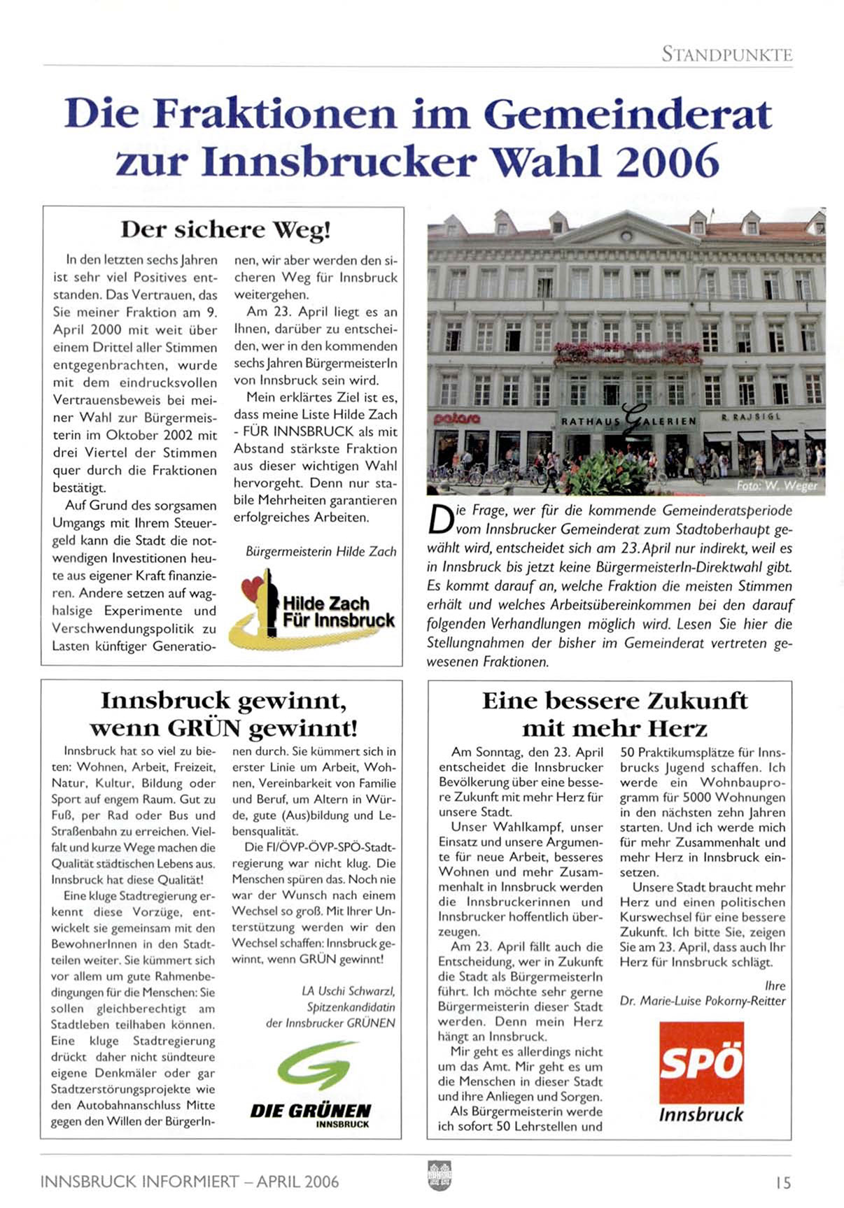 in Innsbruck bis jetzt keine Bürgermeisterin-Direktwahl gibt.