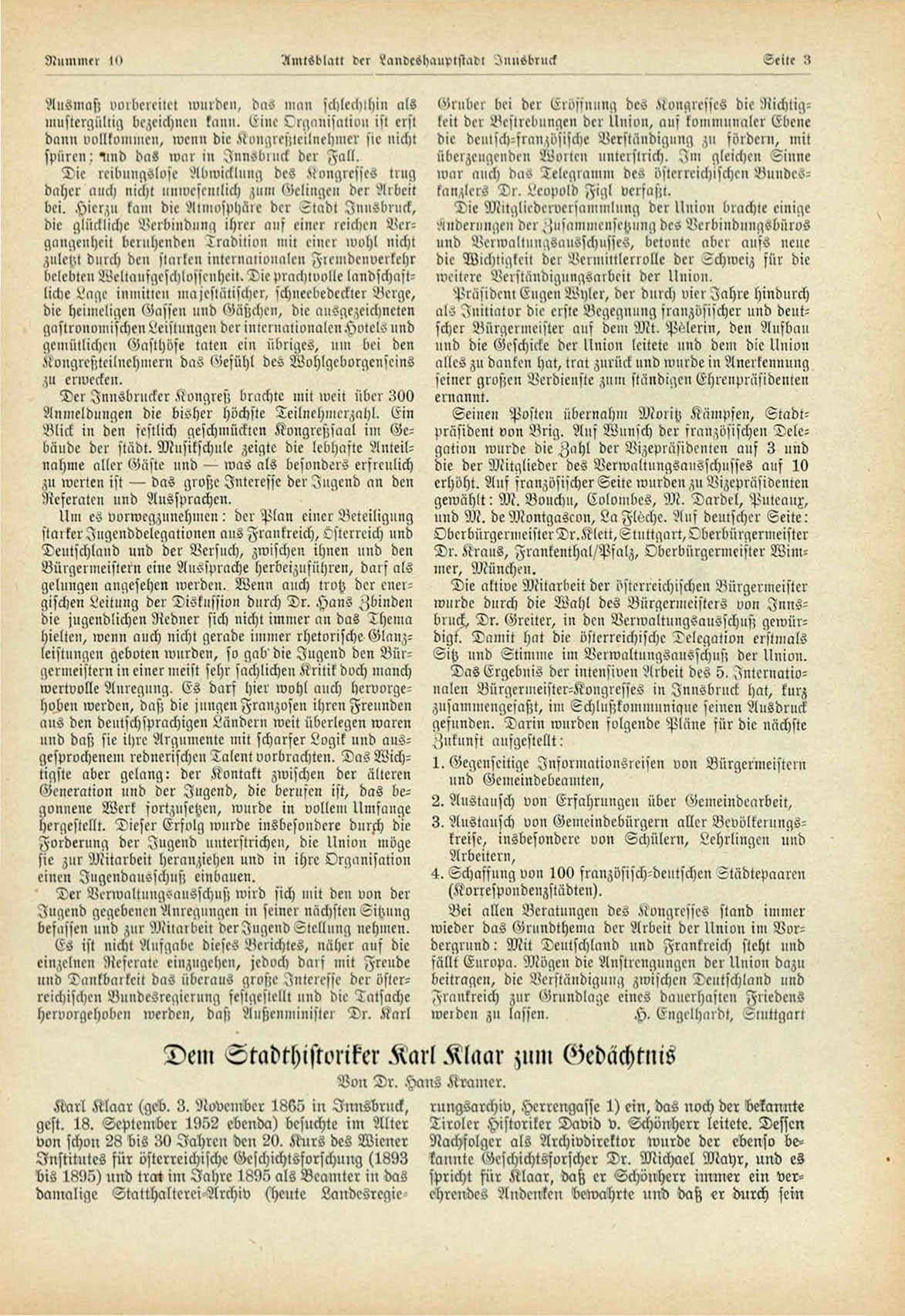 Karl Klaar (geb. 3. November 18l>5 ili Innsbruck, rnngsarchiv, Hcrrcngasse 1) ein, das noch der bekannte