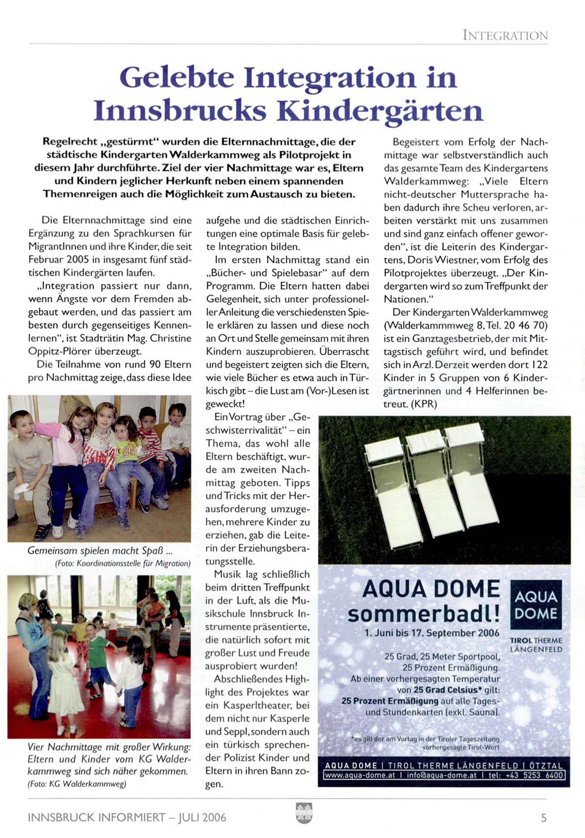 d i e s e m Jahr d u r c h f ü h r t e . Z i e l d e r v i e r N a c h m i t t a g e w a r es, E l t e r n