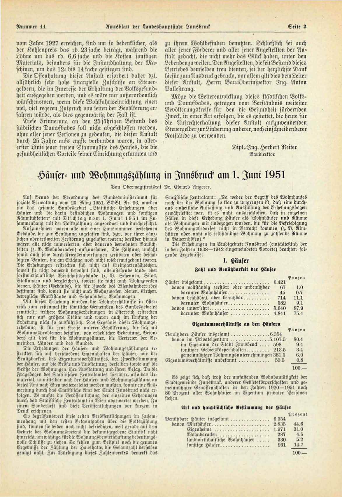 Häuser- und Wohnungszählung in Innsbruck am I . Juni 1951