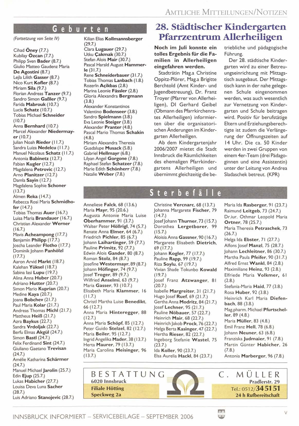 I N N S B R U C K INFORMIERT - SERVICEBEILAGE - SEPTEMBER 2006