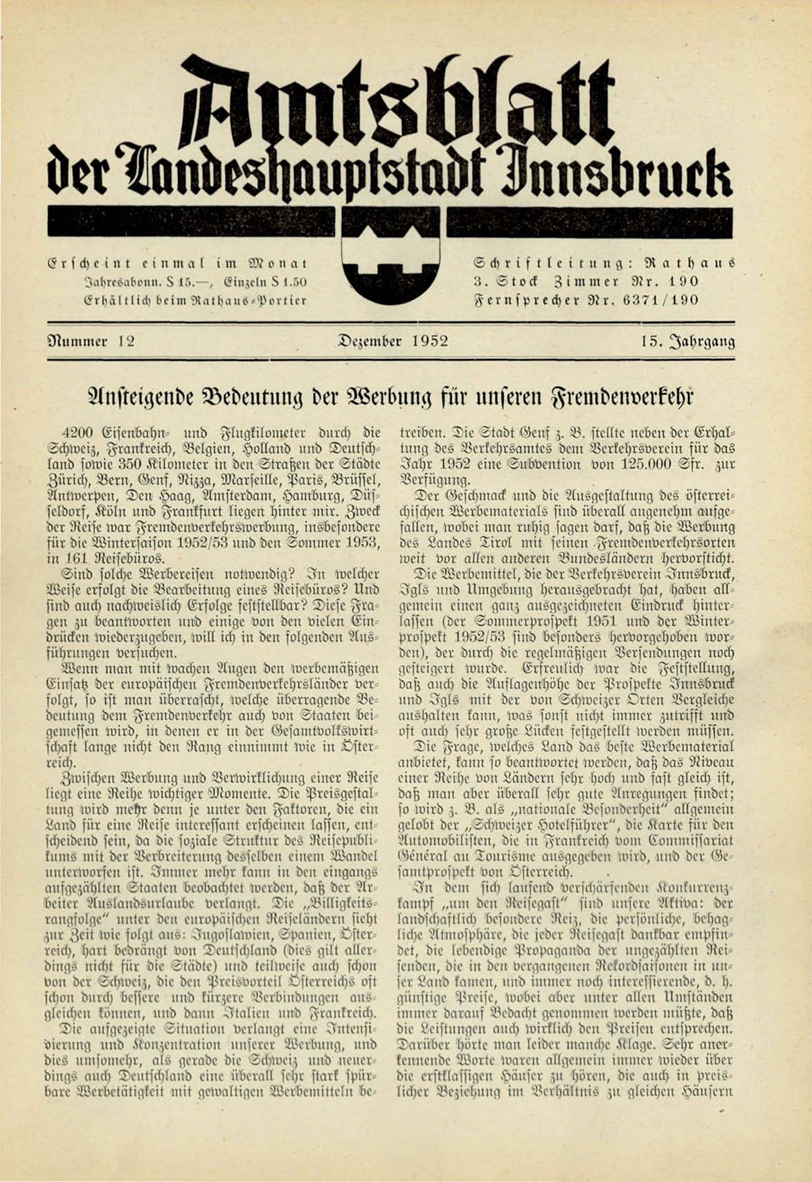 daß auch die Auflageichöhc der Prospekte Innsbruck