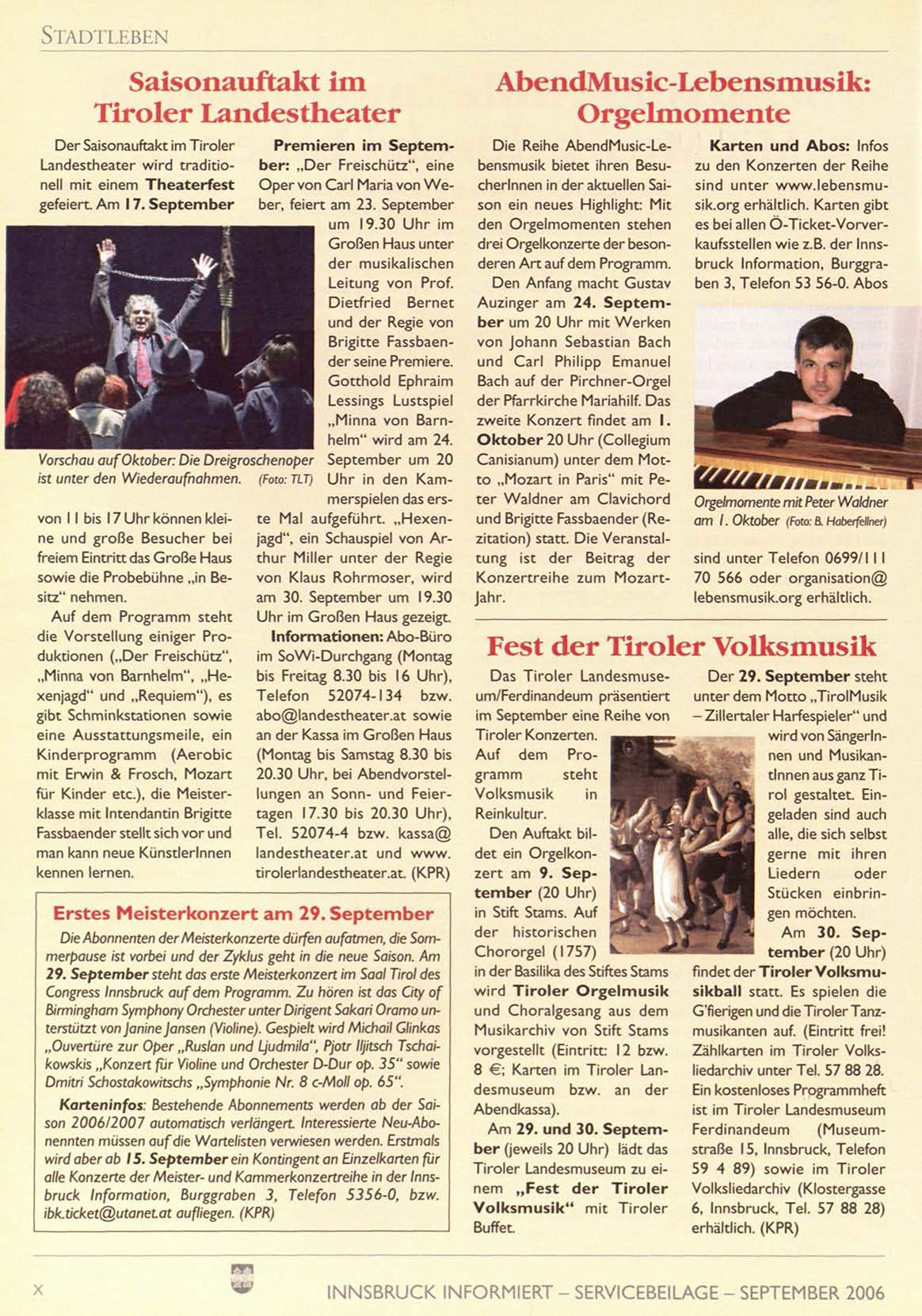 I N N S B R U C K INFORMIERT - SERVICEBEILAGE - SEPTEMBER 2006