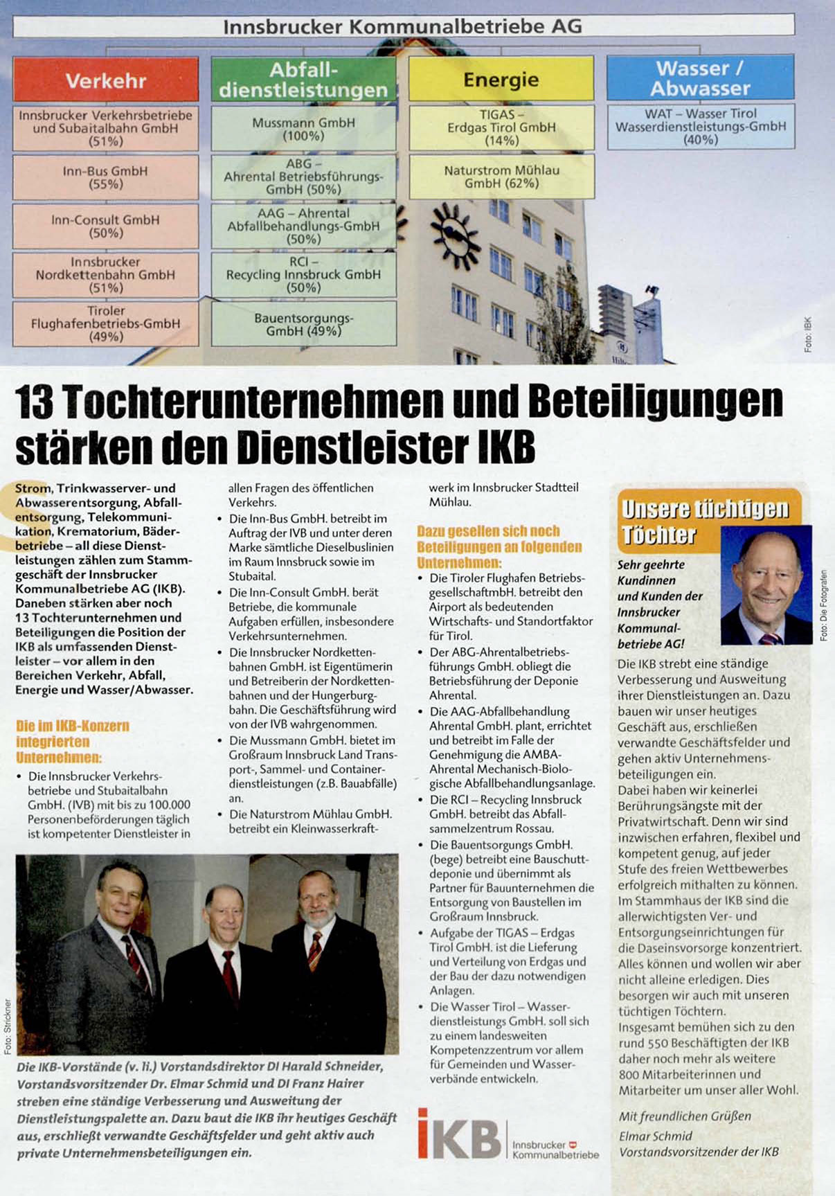Abwnsserentsorgung, Abfallentsorgung, Telekommunik a t i o n , K r e m a t o r i u m , Bäderb e t r i e b e - a l l diese D i e n s t leistungen zählen z u m S t a m m geschäft d e r Innsbrucker