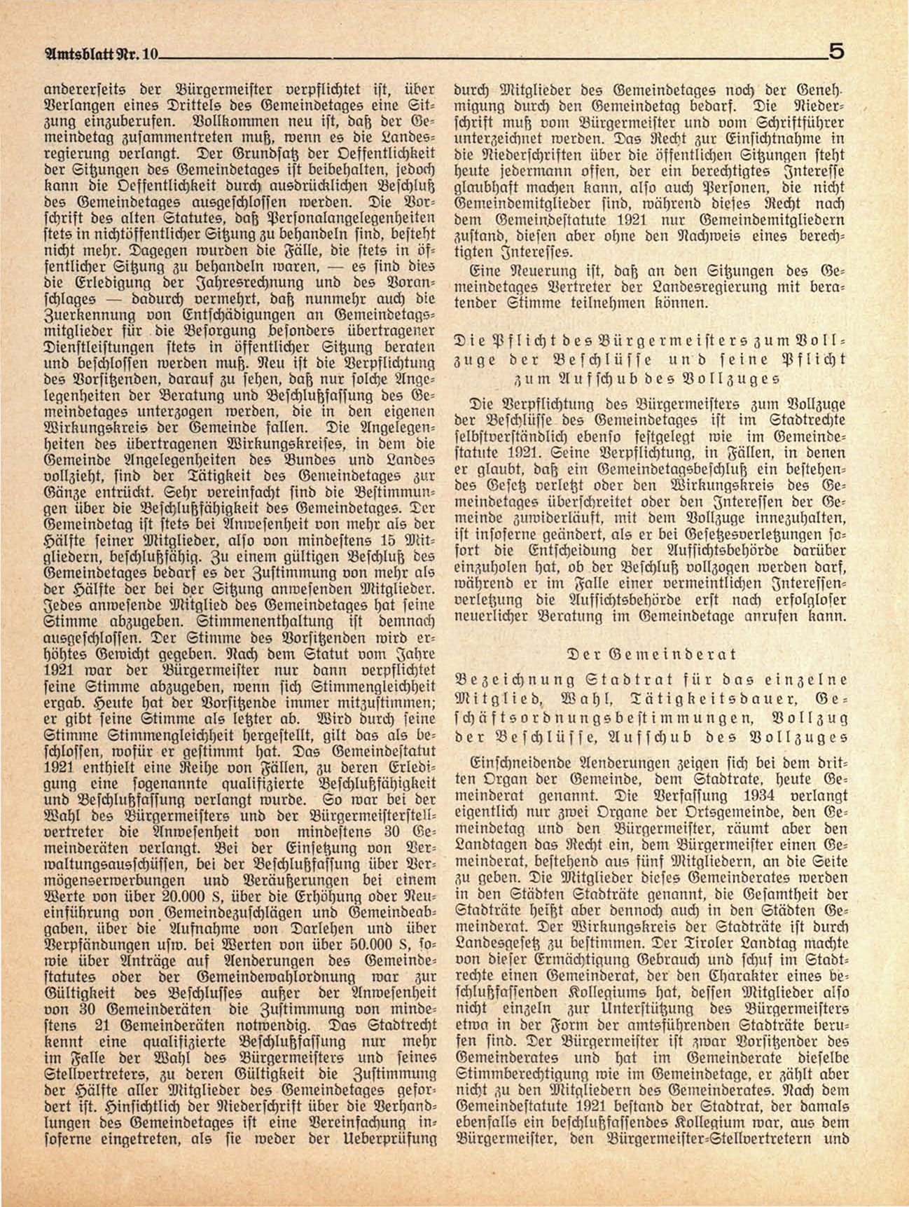 Einschneidende Aenderungen zeigen sich bei dem dritten Organ der Gemeinde, dem Stadtrate, heute Gemeinderat genannt. Die Verfassung 1934 verlangt