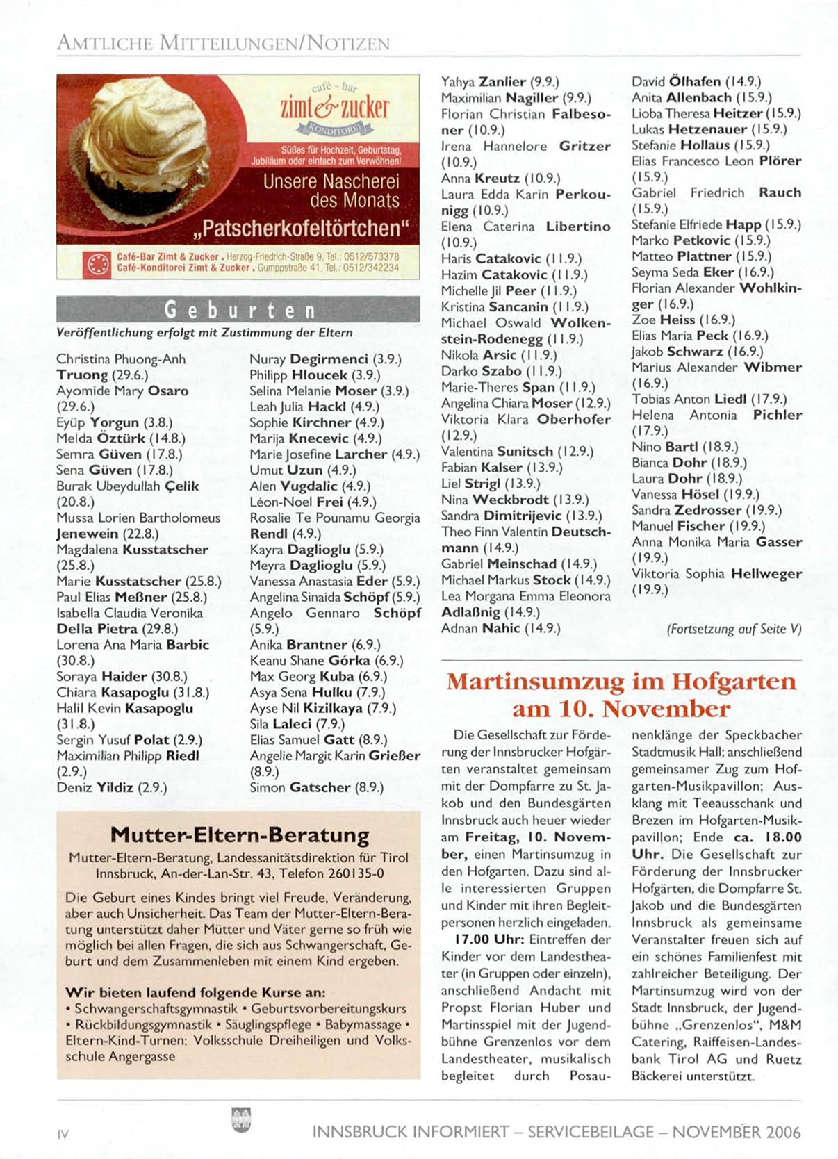 INNSBRUCK INFORMIERT - SERVICEBEILAGE - NOVEMBER 2006
