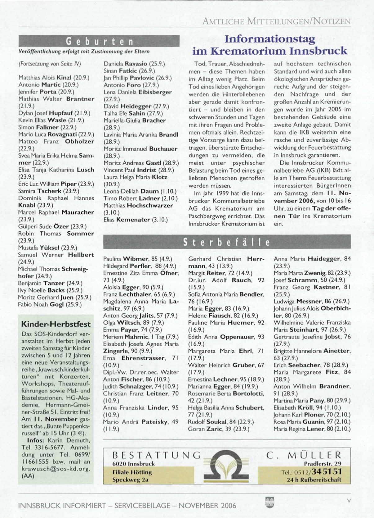 INNSBRUCK INFORMIERT - SERVICEBEILAGE - NOVEMBER 2006