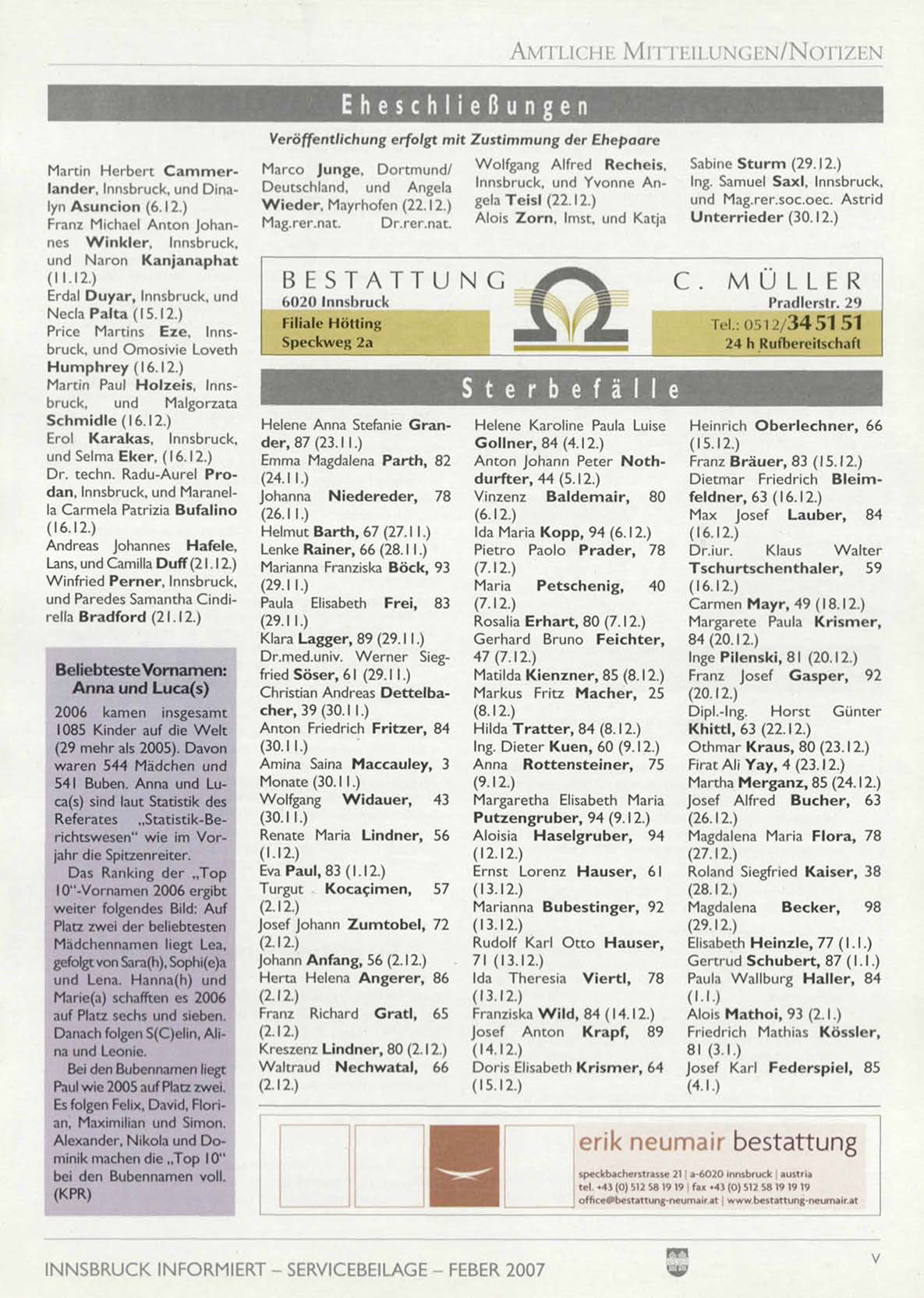 INNSBRUCK INFORMIERT - SERVICEBEILAGE - FEBER 2007