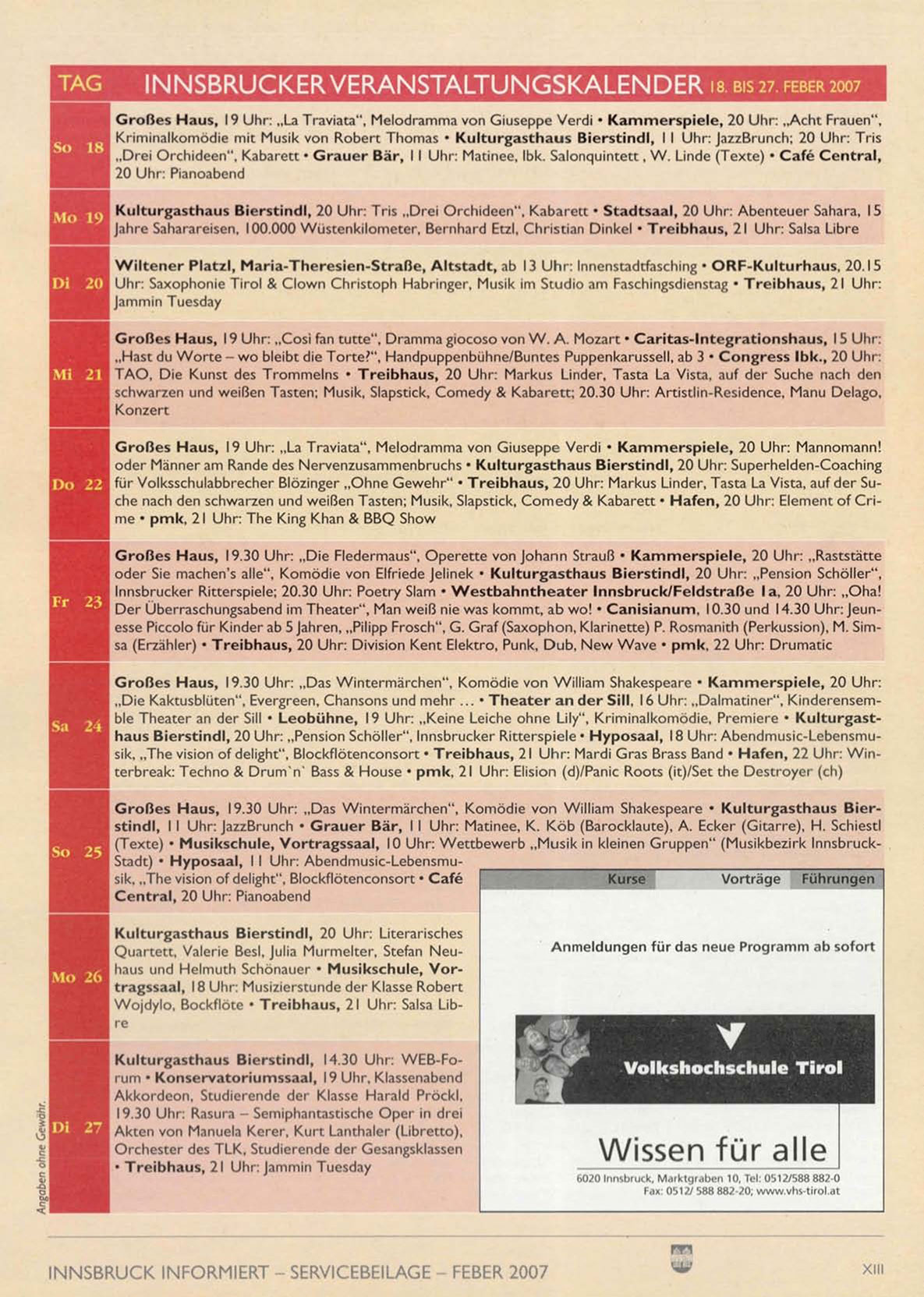 INNSBRUCKER VERANSTALTUNGSKALENDER,», BIS 27. FEBER2OO7