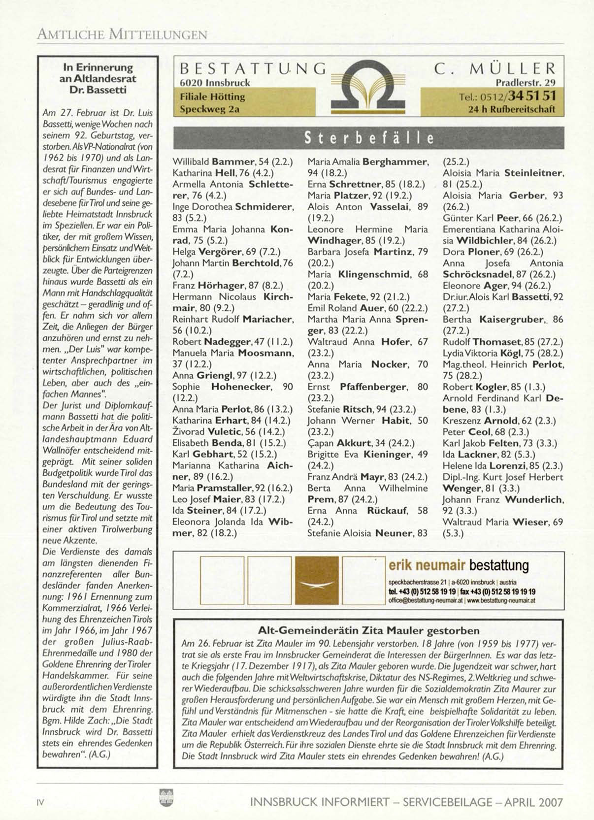 INNSBRUCK INFORMIERT - SERVICEBEILAGE -APRIL 2007