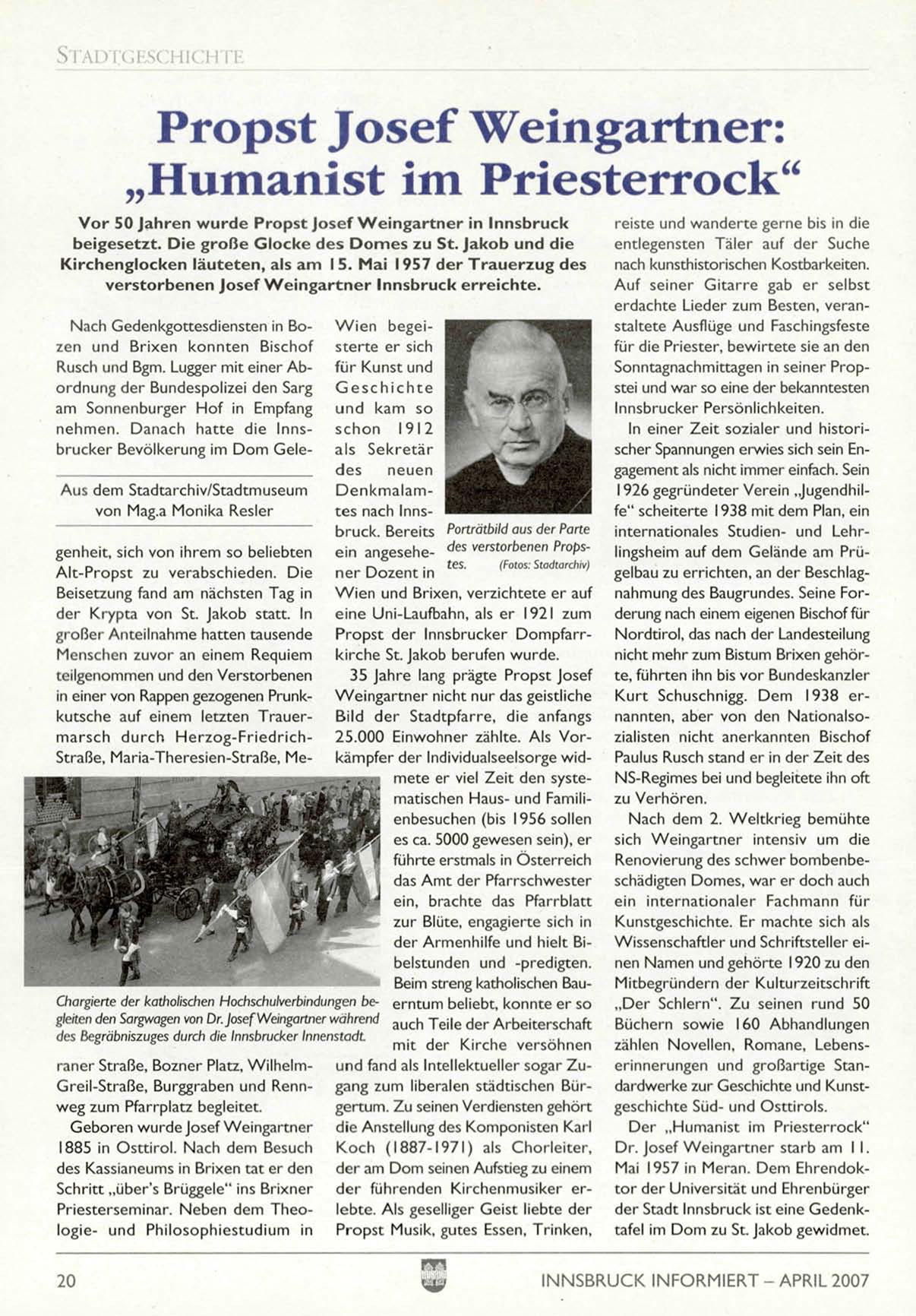 nehmen. Danach hatte die Innsbrucker Bevölkerung im D o m GeleAus dem Stadtarchiv/Stadtmuseum