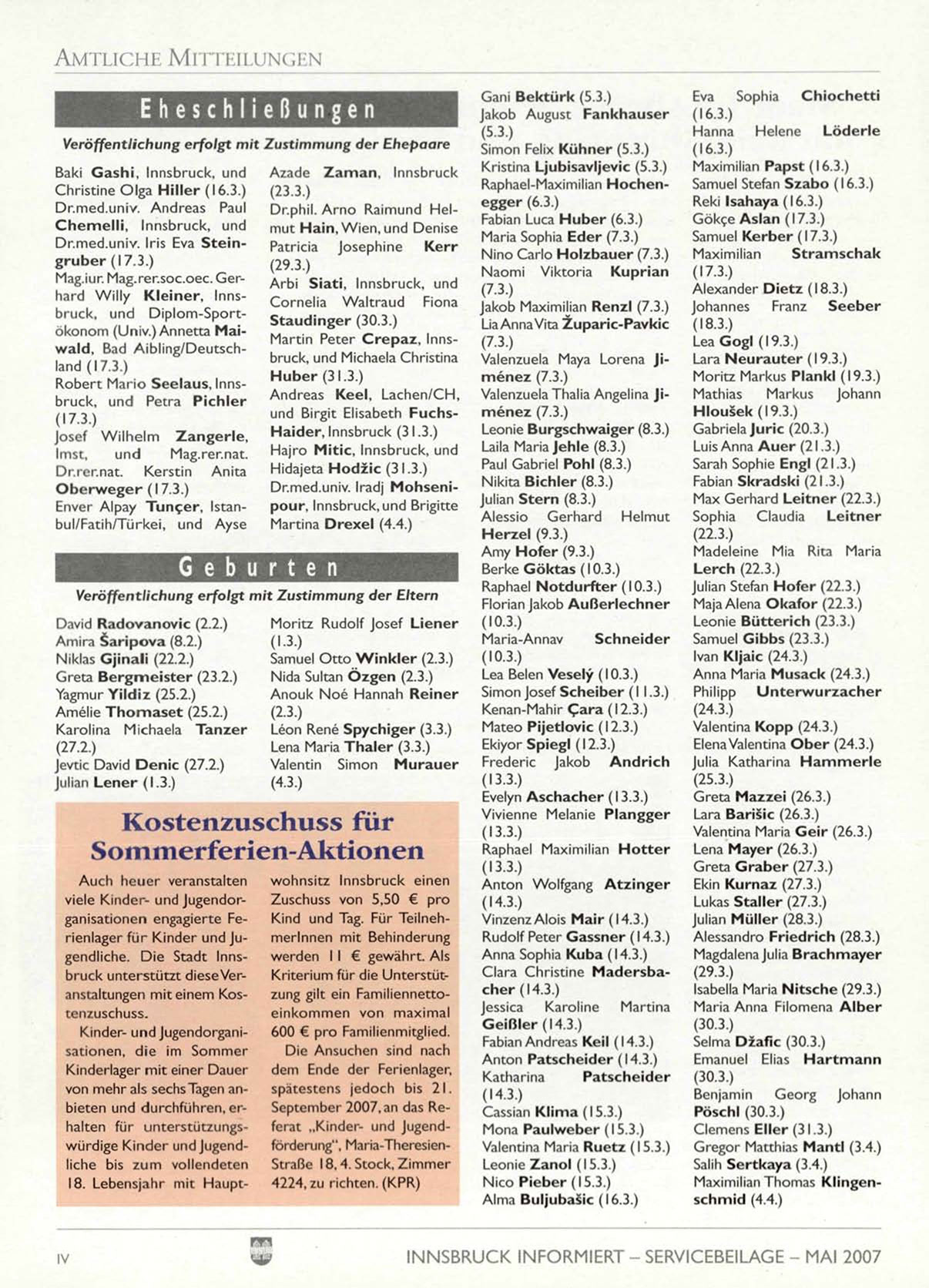 INNSBRUCK INFORMIERT - SERVICEBEILAGE - MAI 2007