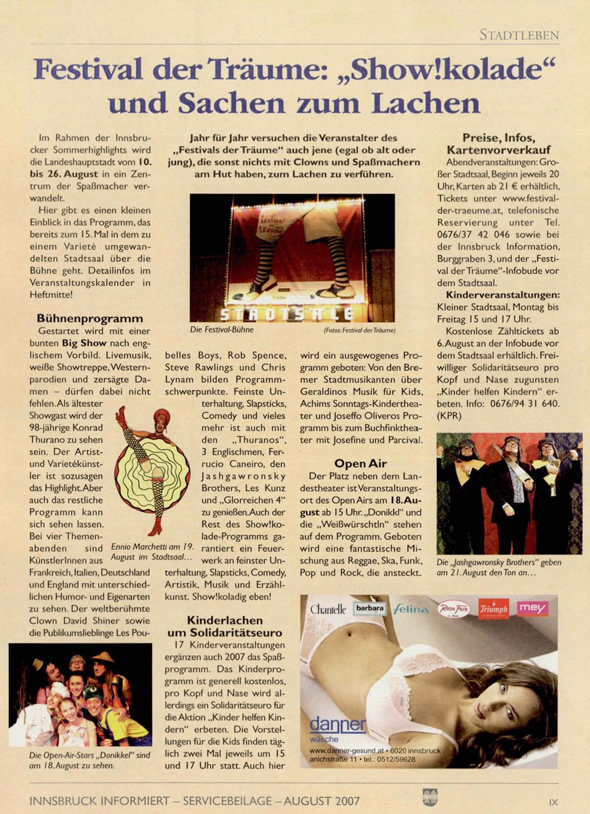 INNSBRUCK INFORMIERT - SERVICEBEILAGE -AUGUST 2007