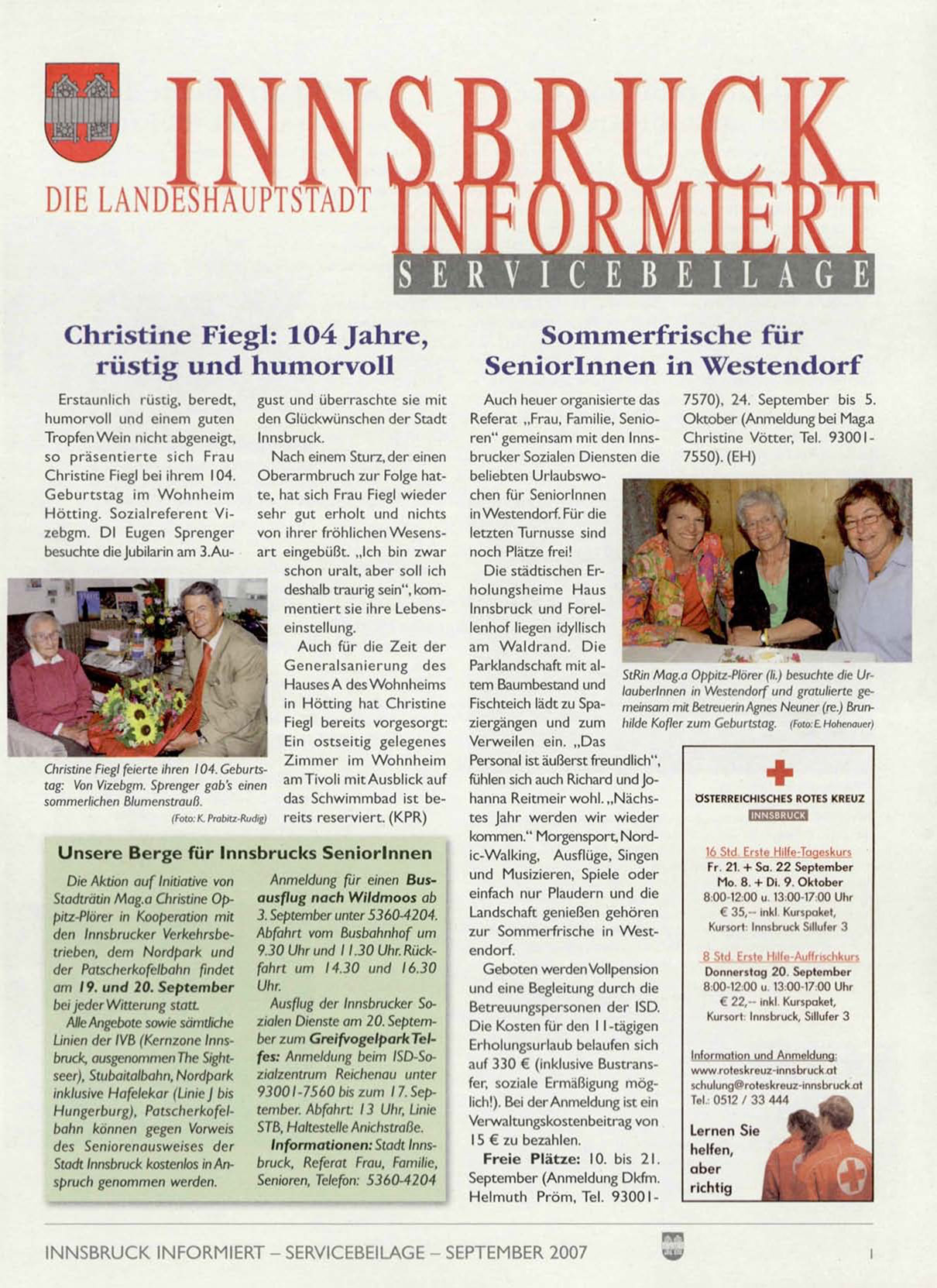 INNSBRUCK INFORMIERT - SERVICEBEILAGE - SEPTEMBER 2007