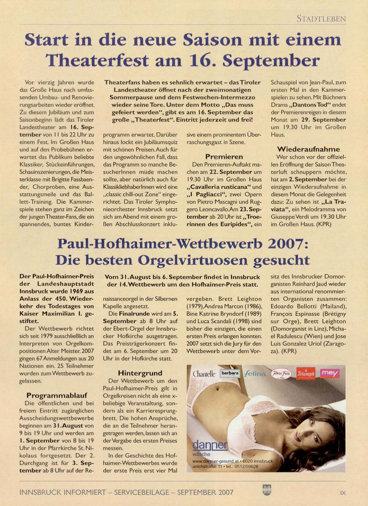 INNSBRUCK INFORMIERT - SERVICEBEILAGE - SEPTEMBER 2007