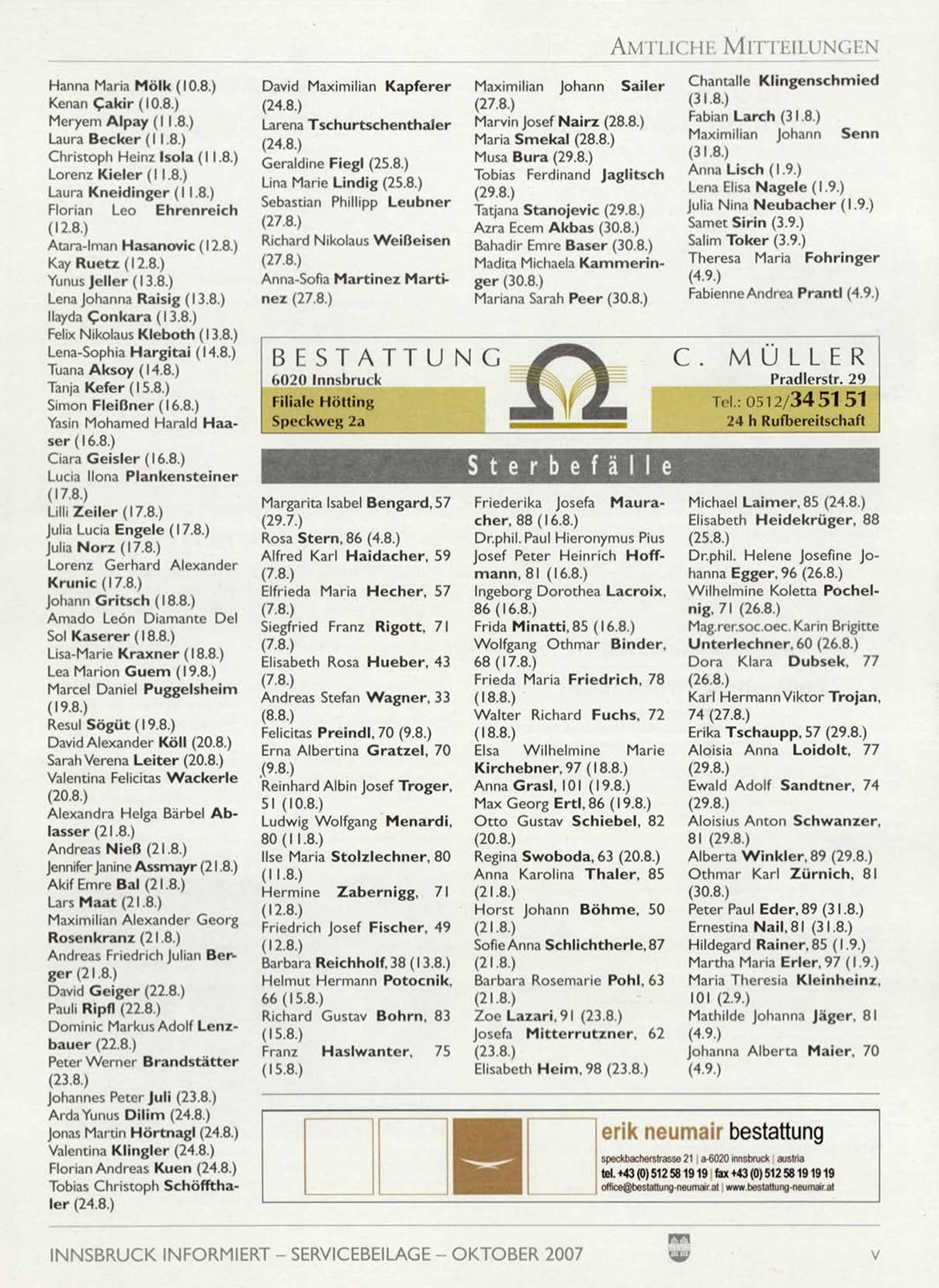 INNSBRUCK INFORMIERT - SERVICEBEILAGE - OKTOBER 2007