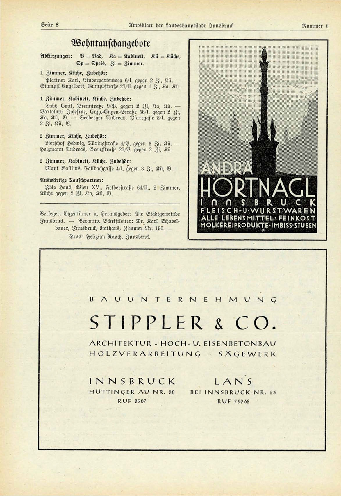 Innsbruck. — Verantw. Schriftleiter: Dr. Karl Schadelbauer, Innsbruck, Rathaus, Zimmer Nr. 190.