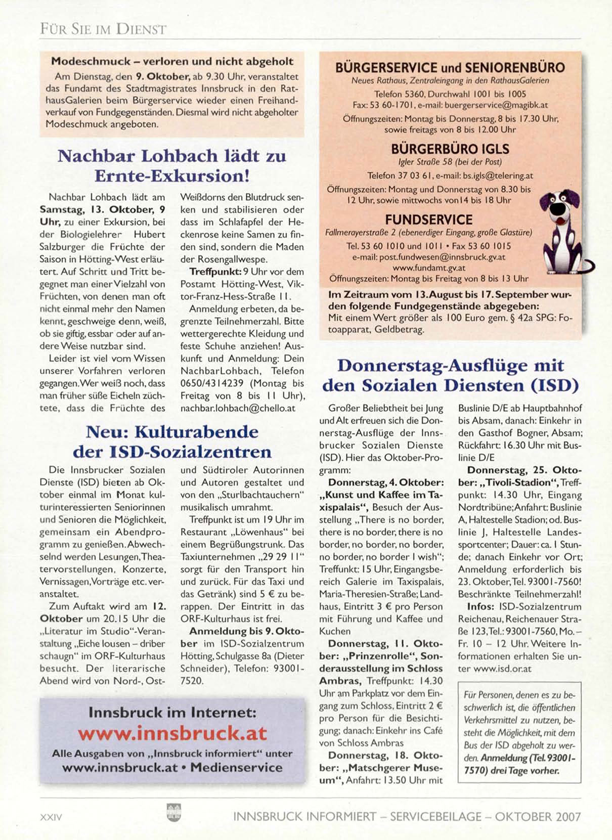 INNSBRUCK INFORMIERT - SERVICEBEILAGE - OKTOBER 2007