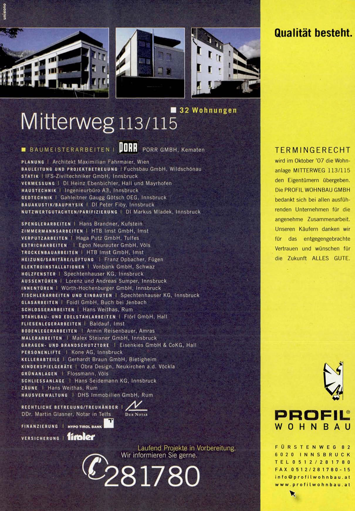 wird im Oktober "07 die Wohnanlage MITTERWEG 113/115