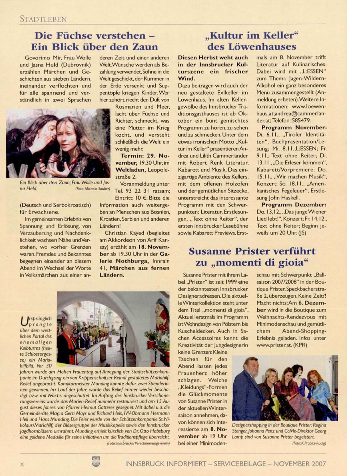 INNSBRUCK INFORMIERT - SERVICEBEILAGE - NOVEMBER 2007