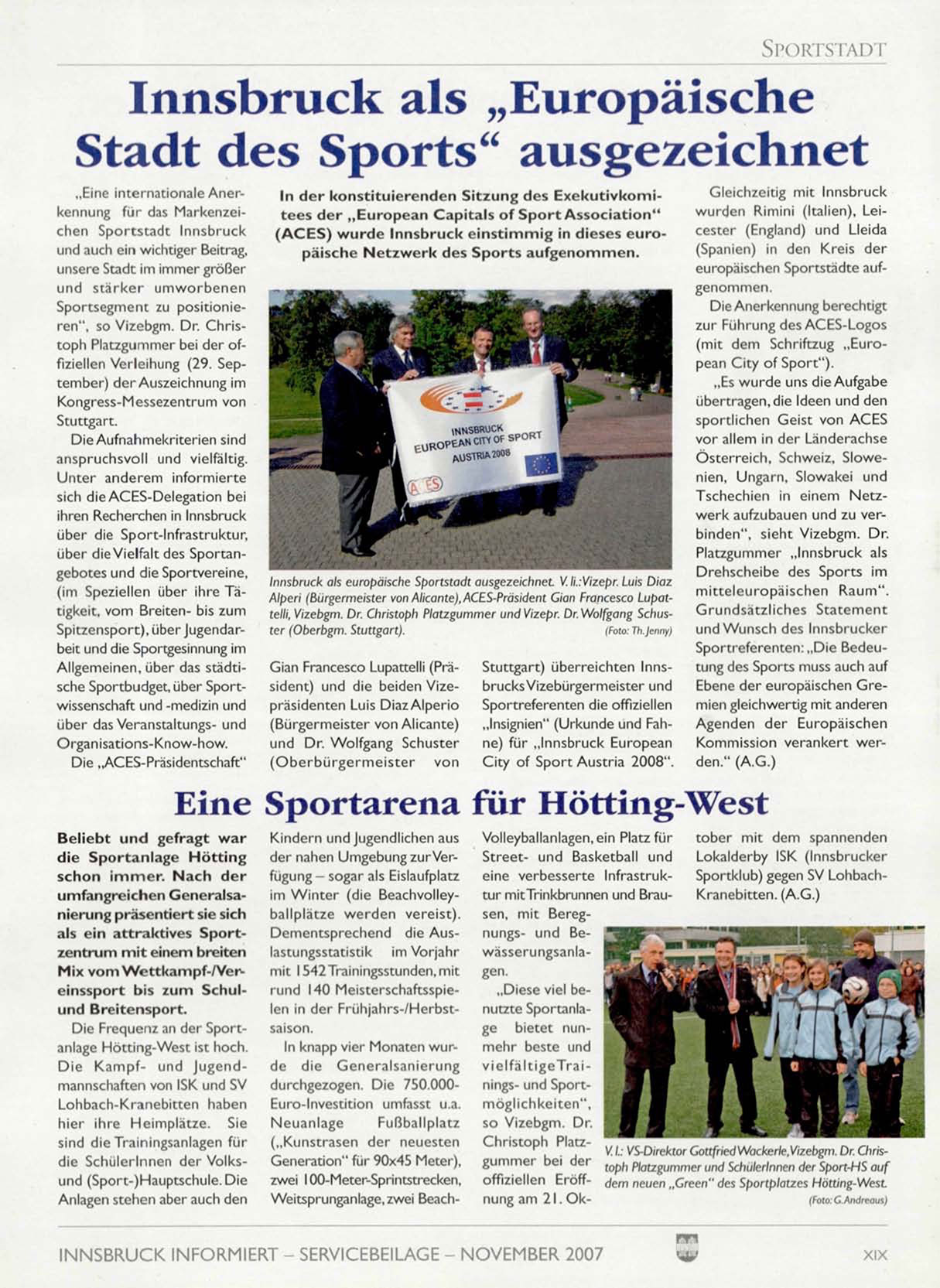 ( A C E S ) w u r d e I n n s b r u c k e i n s t i m m i g in d i e s e s e u r o p ä i s c h e N e t z w e r k des S p o r t s a u f g e n o m m e n .