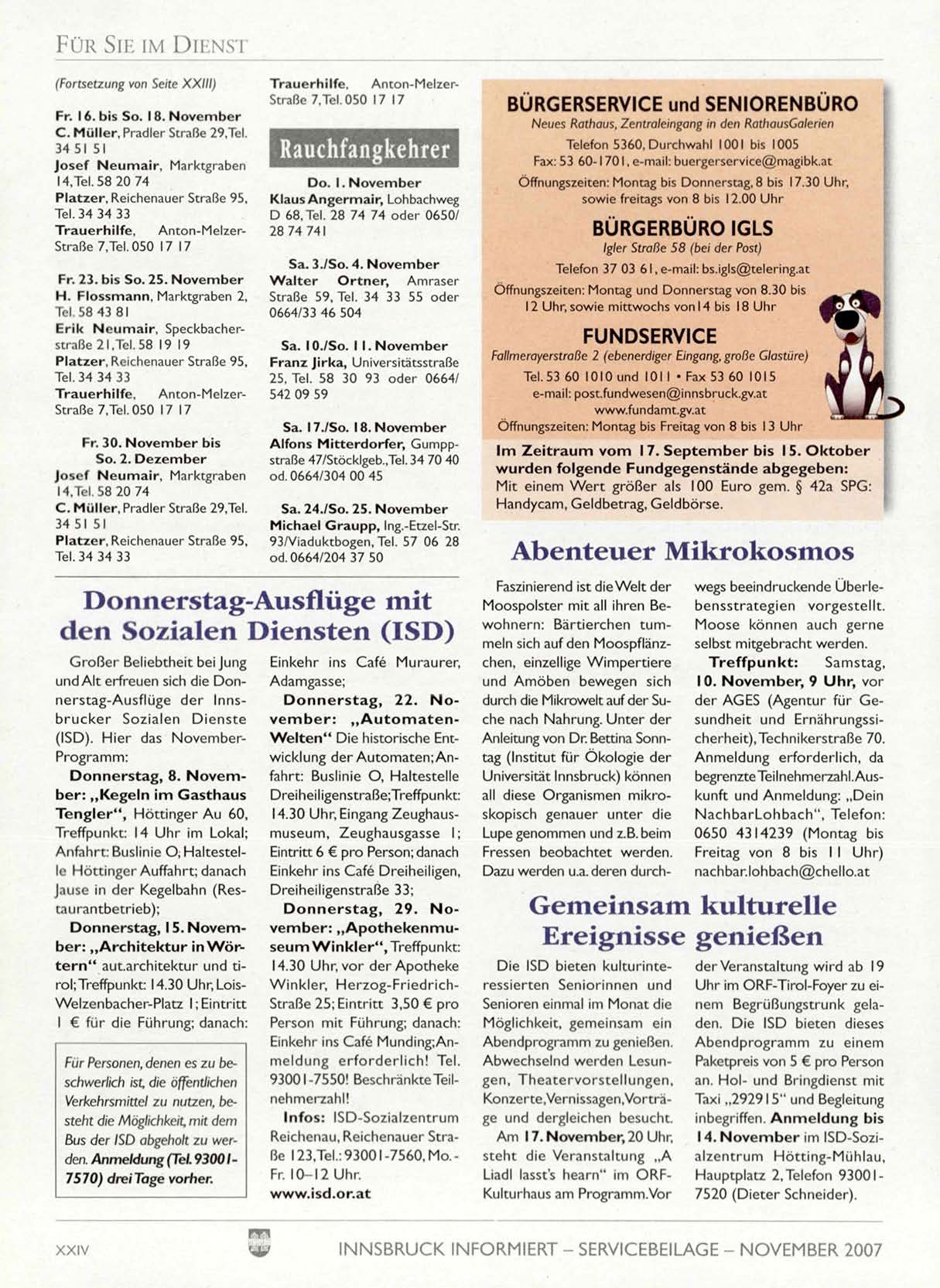 INNSBRUCK INFORMIERT - SERVICEBEILAGE - NOVEMBER 2007