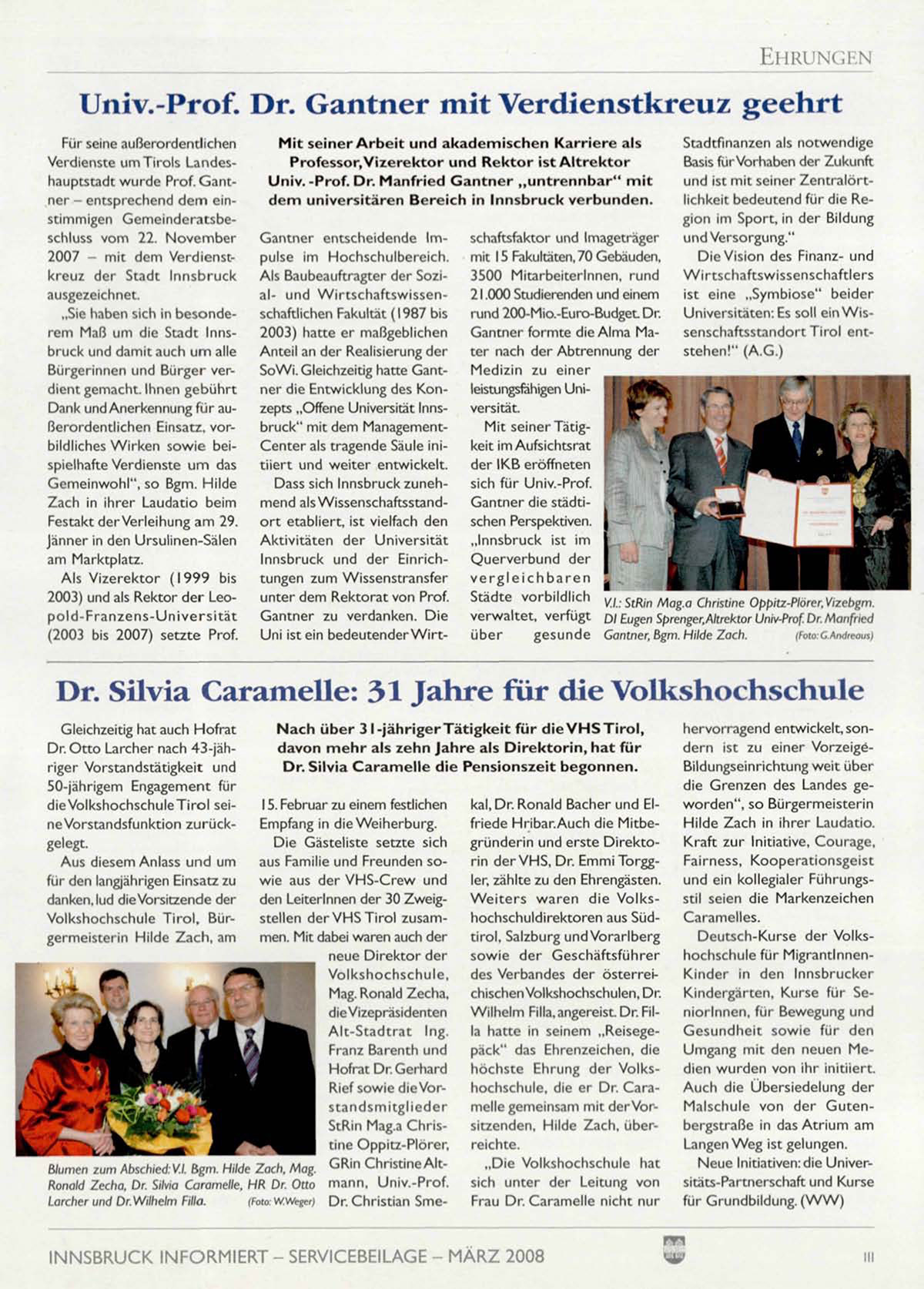 2007 - mit dem Verdienstkreuz der Stadt Innsbruck