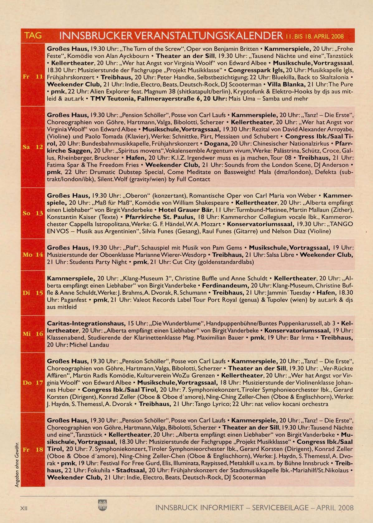 INNSBRUCKER VERANSTALTUNGSKALENDER ii.Bis is APRIL2OO8