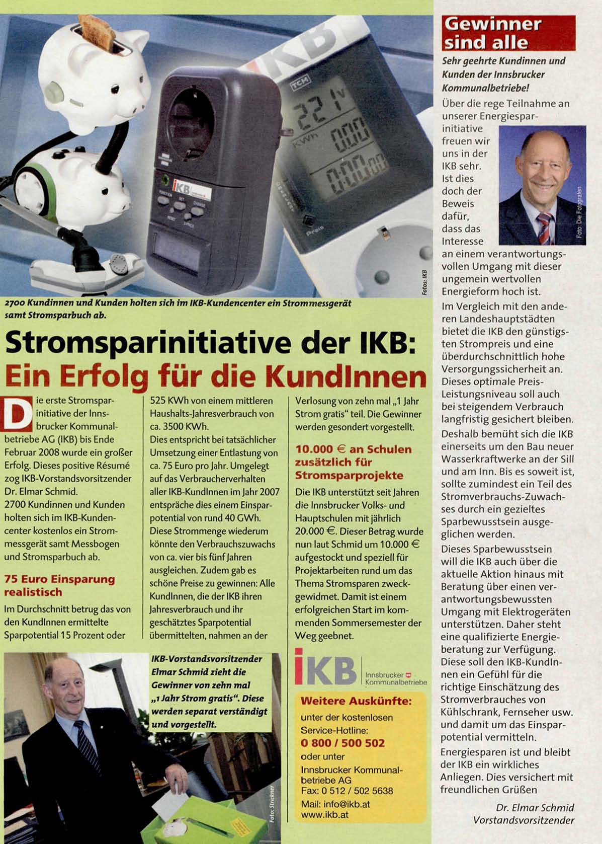 ie erste Stromsparinitiative der Innsbrucker Kommunalbetriebe AG (IKB) bis Ende