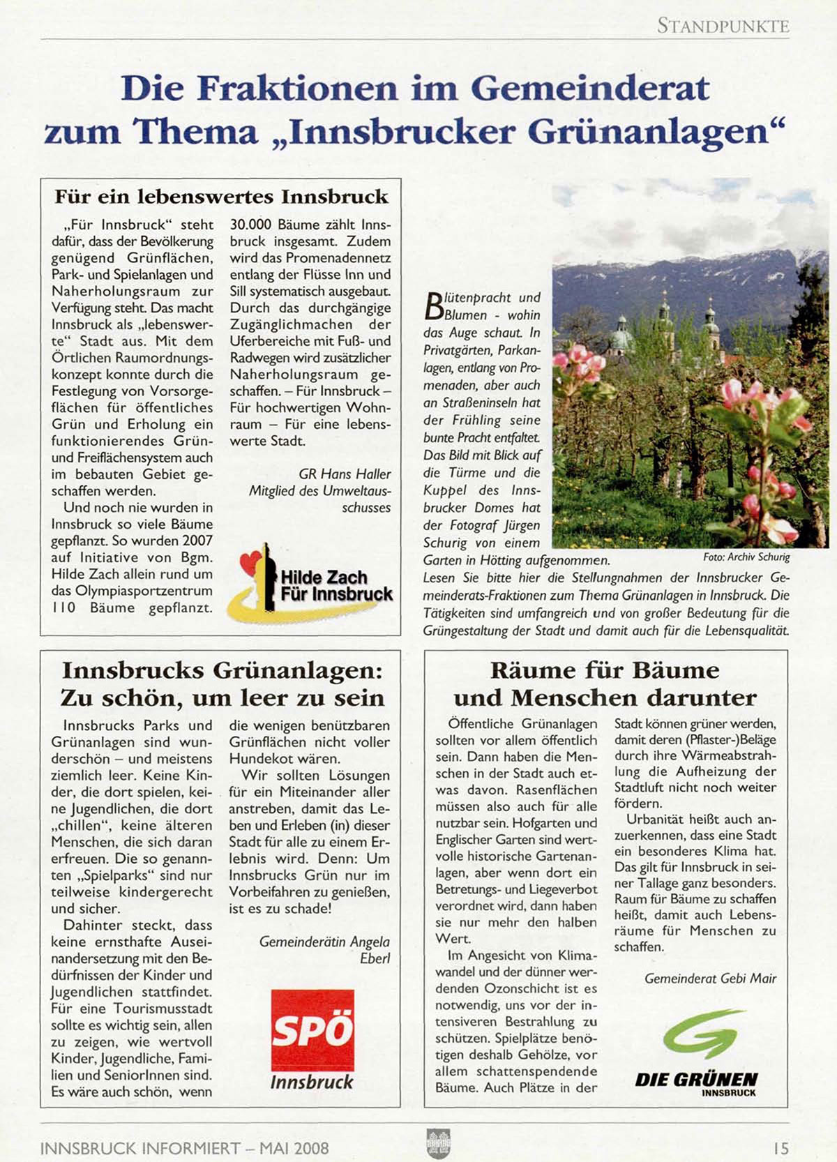 Lesen Sie bitte hier die Stellungnahmen der Innsbrucker Gemeinderats-Fraktionen zum Thema Grünanlagen in Innsbruck. Die