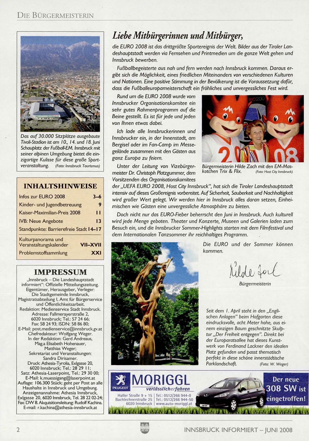 der „UEFA EURO 2008, Host City Innsbruck", hat sich die Tiroler Landeshauptstadt