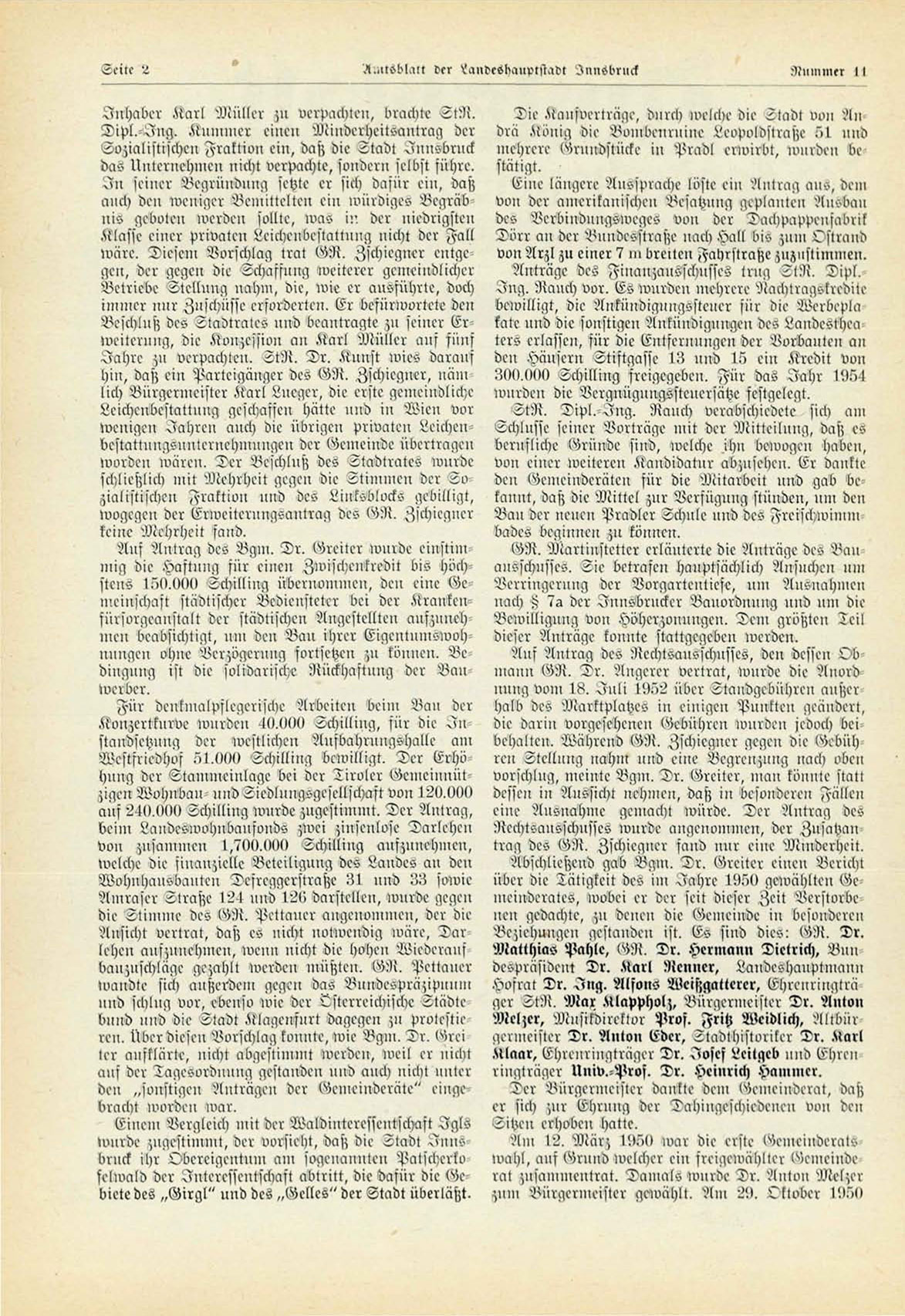 lich Bürgermeister K a r l Lneger, die erste gemeindliche