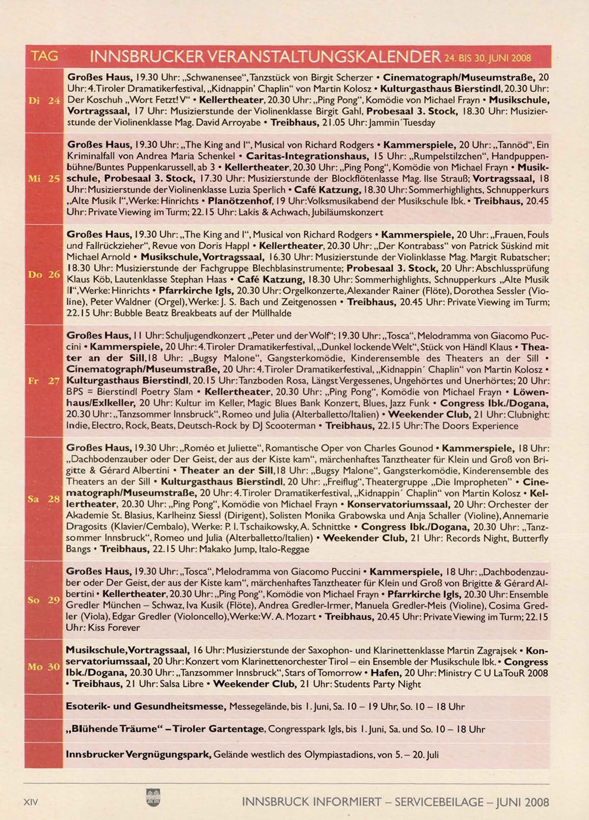 INNSBRUCKER VERANSTALTUNGSKALENDER 24. BIS 30 JUNI 2008
