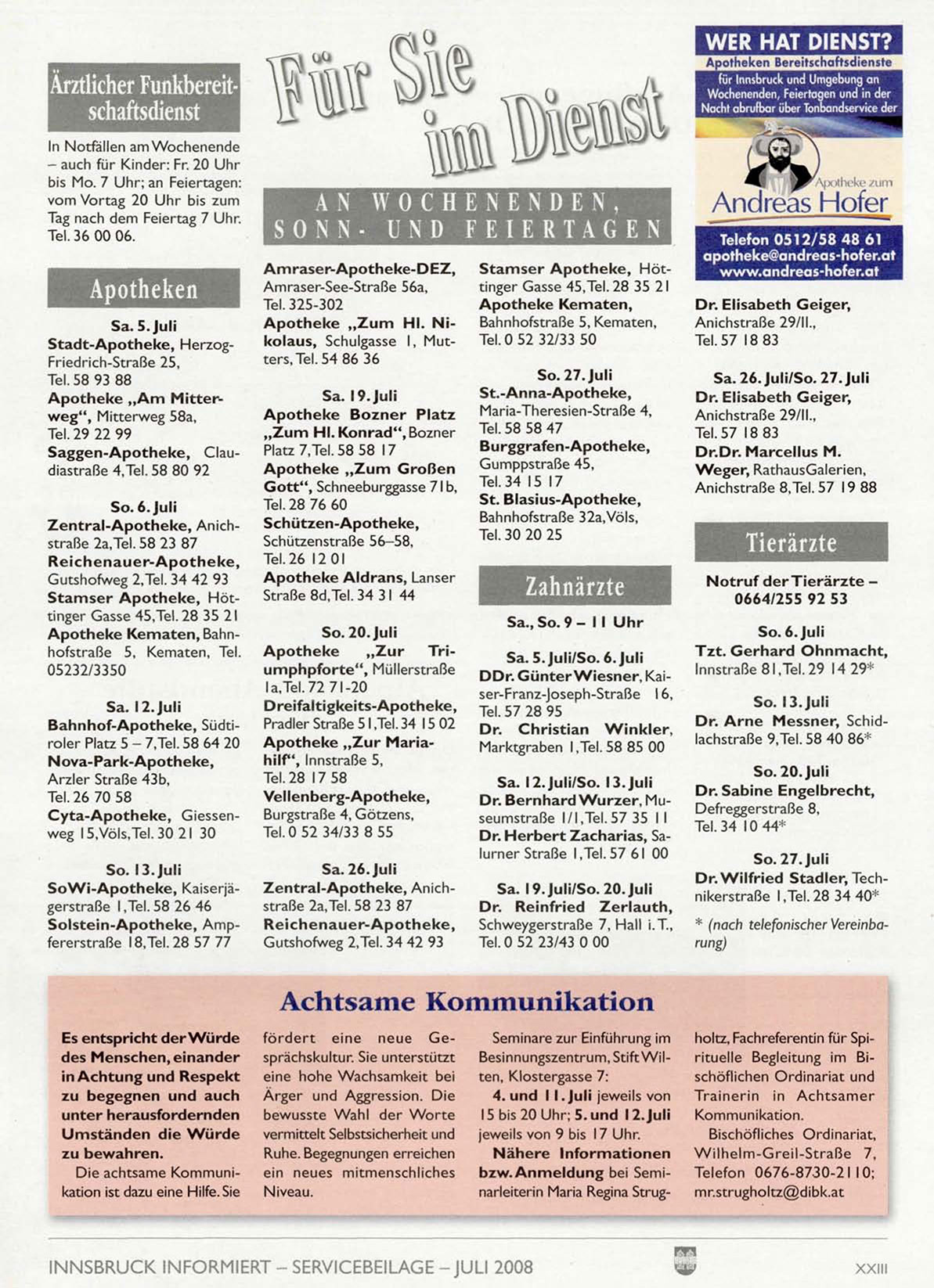 INNSBRUCK INFORMIERT - SERVICEBEILAGE - JULI 2008