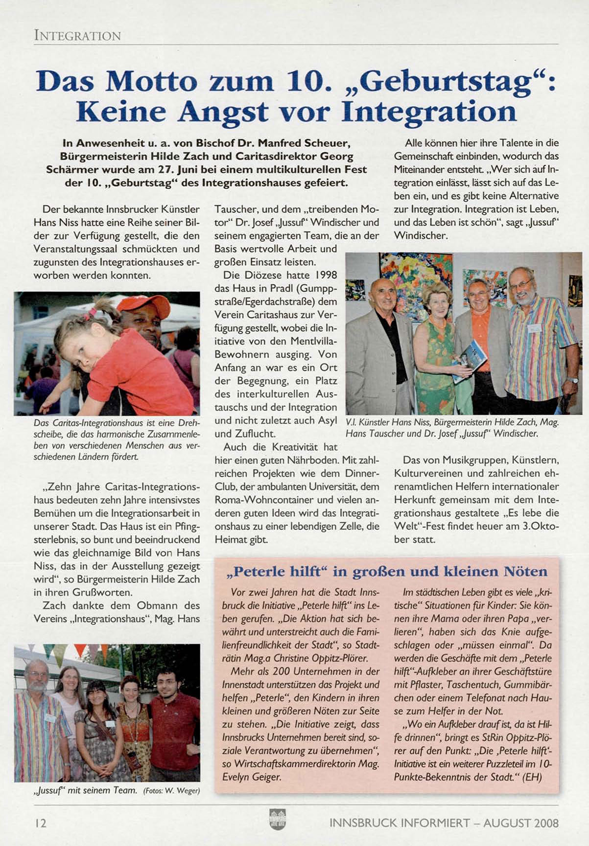 Das Caritas-Integrationshaus ist eine Dreh- und nicht zuletzt auch Asyl V.l. Künstler Hans Niss, Bürgermeisterin Hilde Zach, Mag.