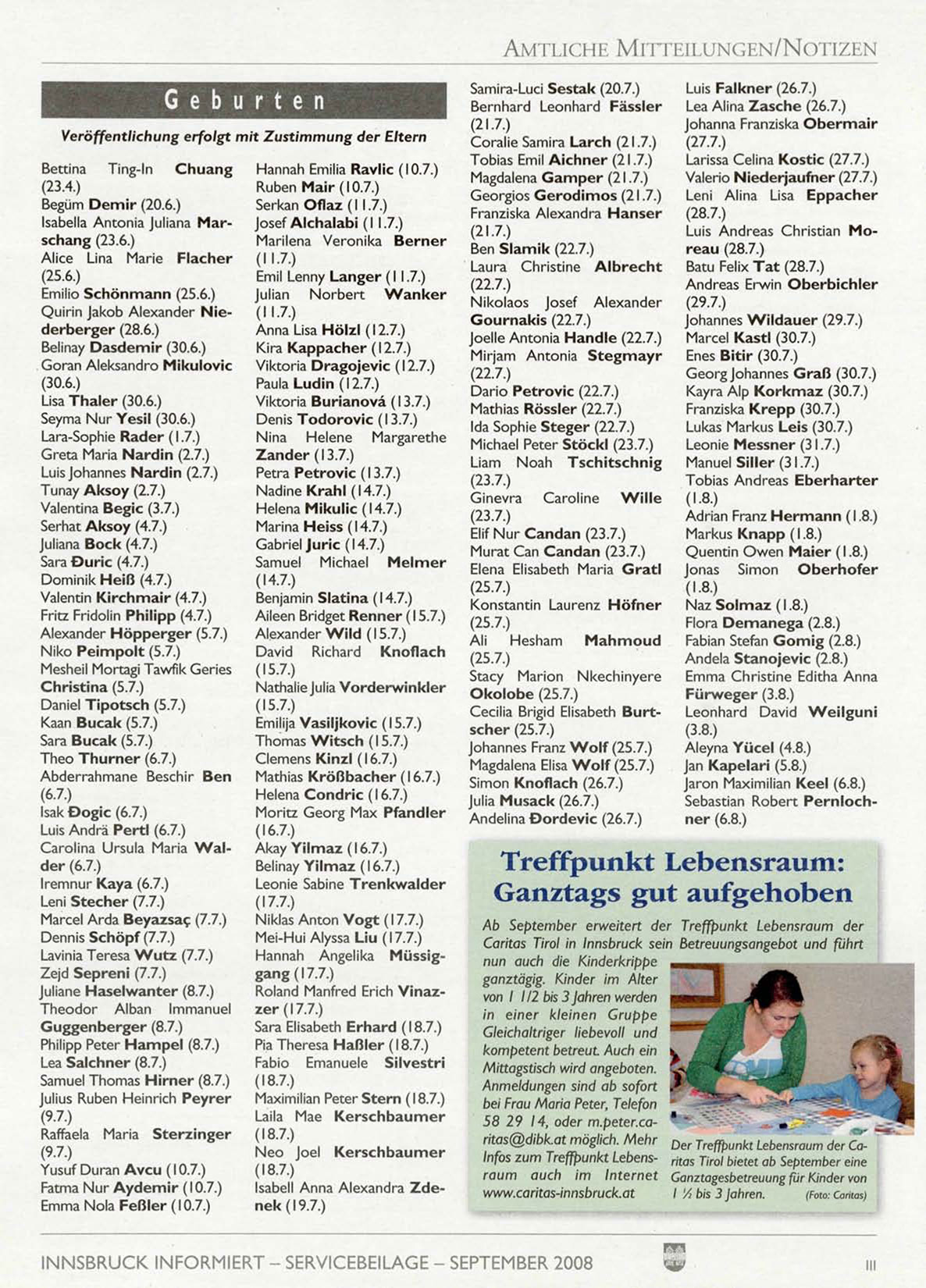 INNSBRUCK INFORMIERT - SERVICEBEILAGE - SEPTEMBER 2008