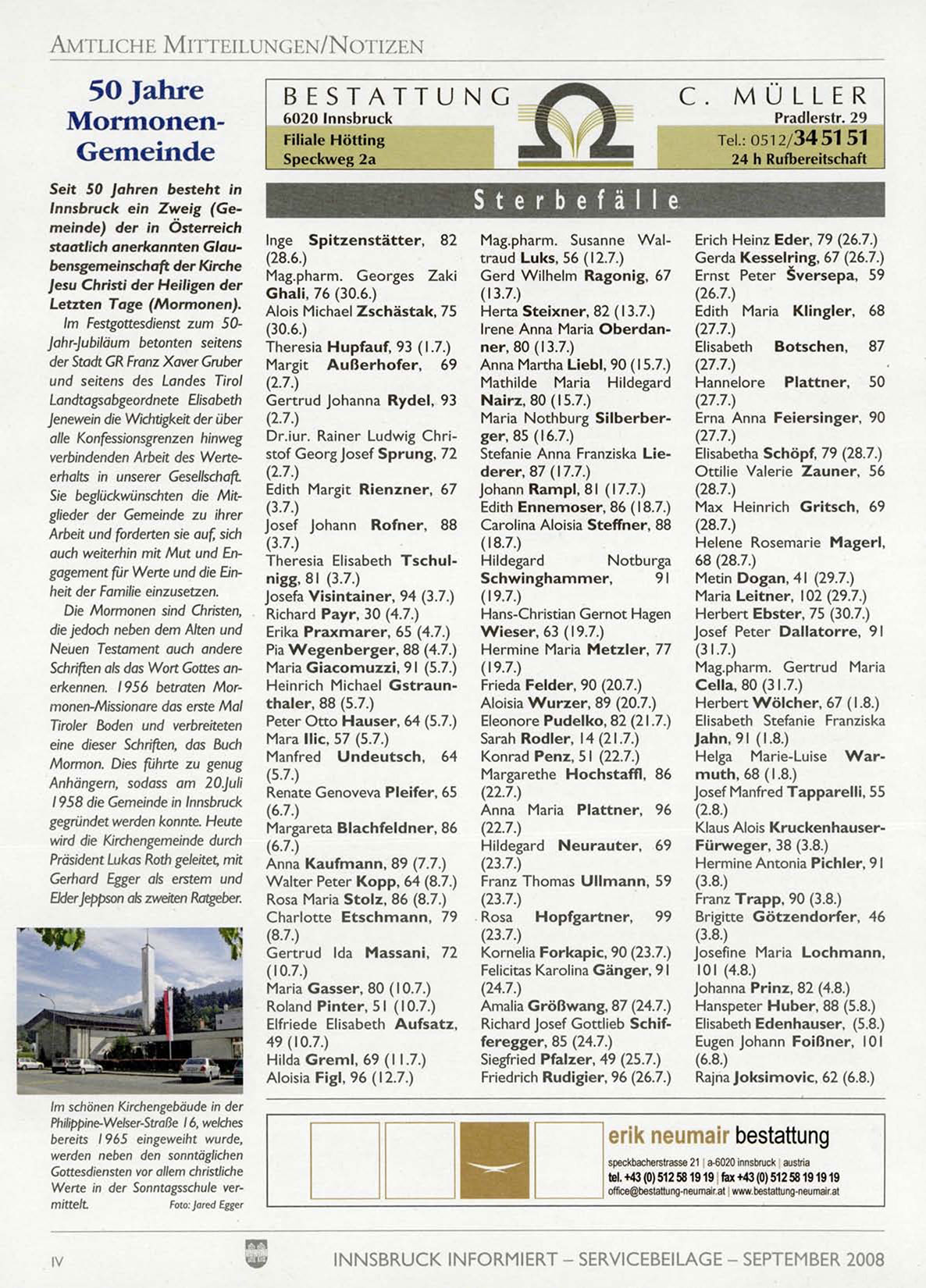 INNSBRUCK INFORMIERT - SERVICEBEILAGE - SEPTEMBER 2008