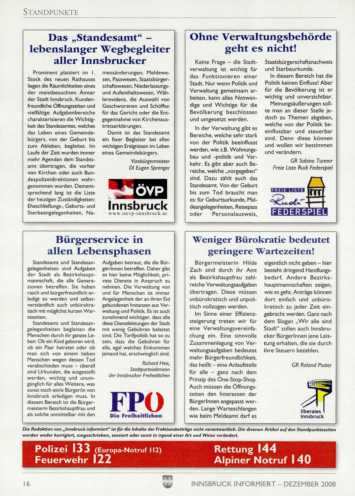 Die Redaktion von „Innsbruck informiert" ist für die Inhalte der Fraktionsbeiträge nicht verantwortlich. Die diversen Artikel auf den Standpunkteseiten