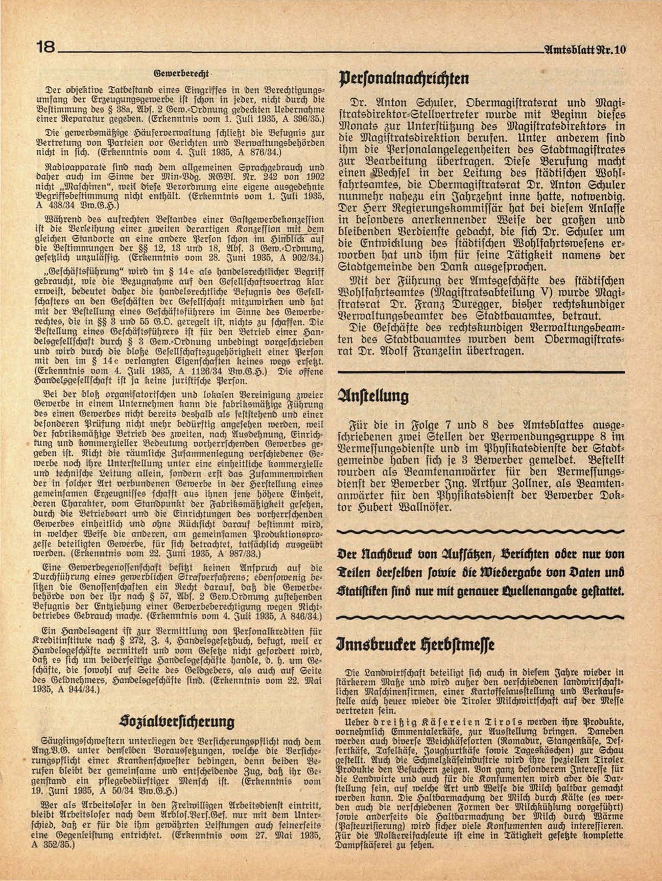Die Geschäfte des rechtskundigen Verwaltungsbeamten des Stadtbauamtes wurden dem Obermagistratsrat Dr. Adolf Franzelin übertragen.