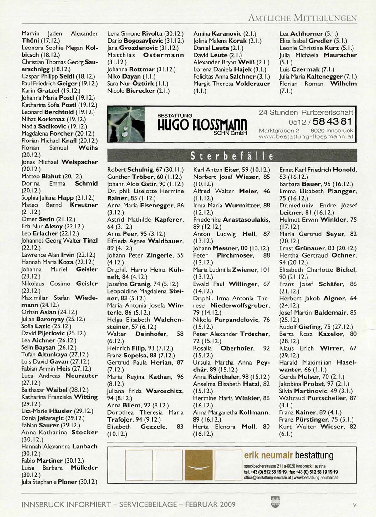 INNSBRUCK INFORMIERT - SERVICEBEILAGE - FEBRUAR 2009